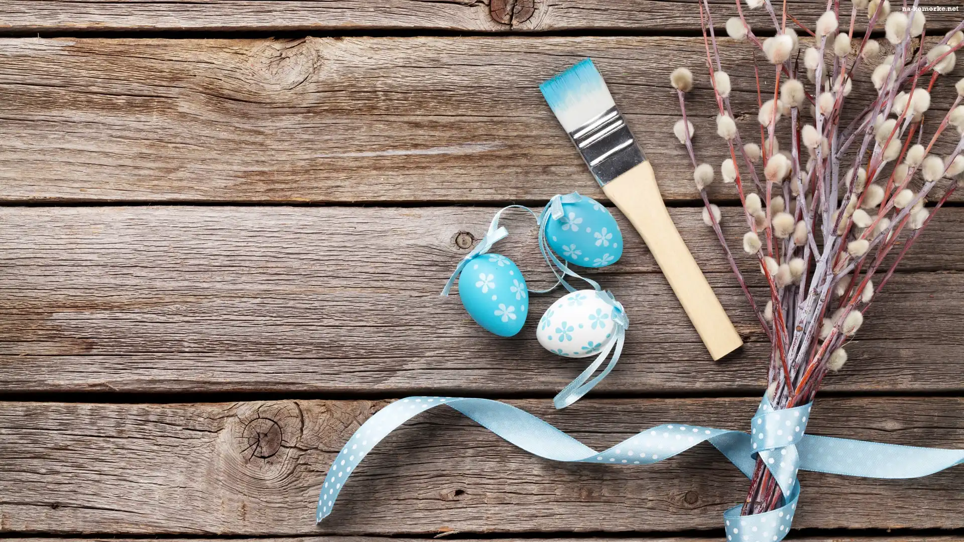 Wielkanoc, Wstążka, Pisanki, Deski, Trzy, Pędzel, Bazie, Niebieska na Komórkę