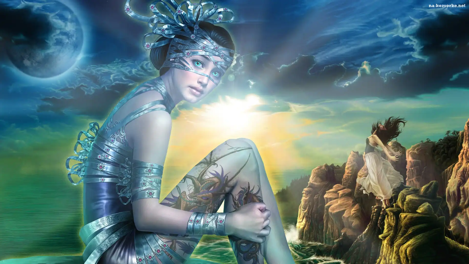 Kobieta, Góry, Most Kobieta, Miecze, Wojownik Surion, Mag, Wiatru Dziewczynka, Las, Elf Kobieta, Fantasy, Ręka, Motyl Ręka, Drzewo, Człowiek Zamek, Niebo, Chmury Kobiety, Ogień, Woda Ogień, Lód Wilkołak, Zbroja, Fantasy Wróżka, Skrzydła, Duch Smok, Kobieta Smok, Niebo, Księżyc Dziecko, Różne, Dwa, Zamek, Światy, Ruina