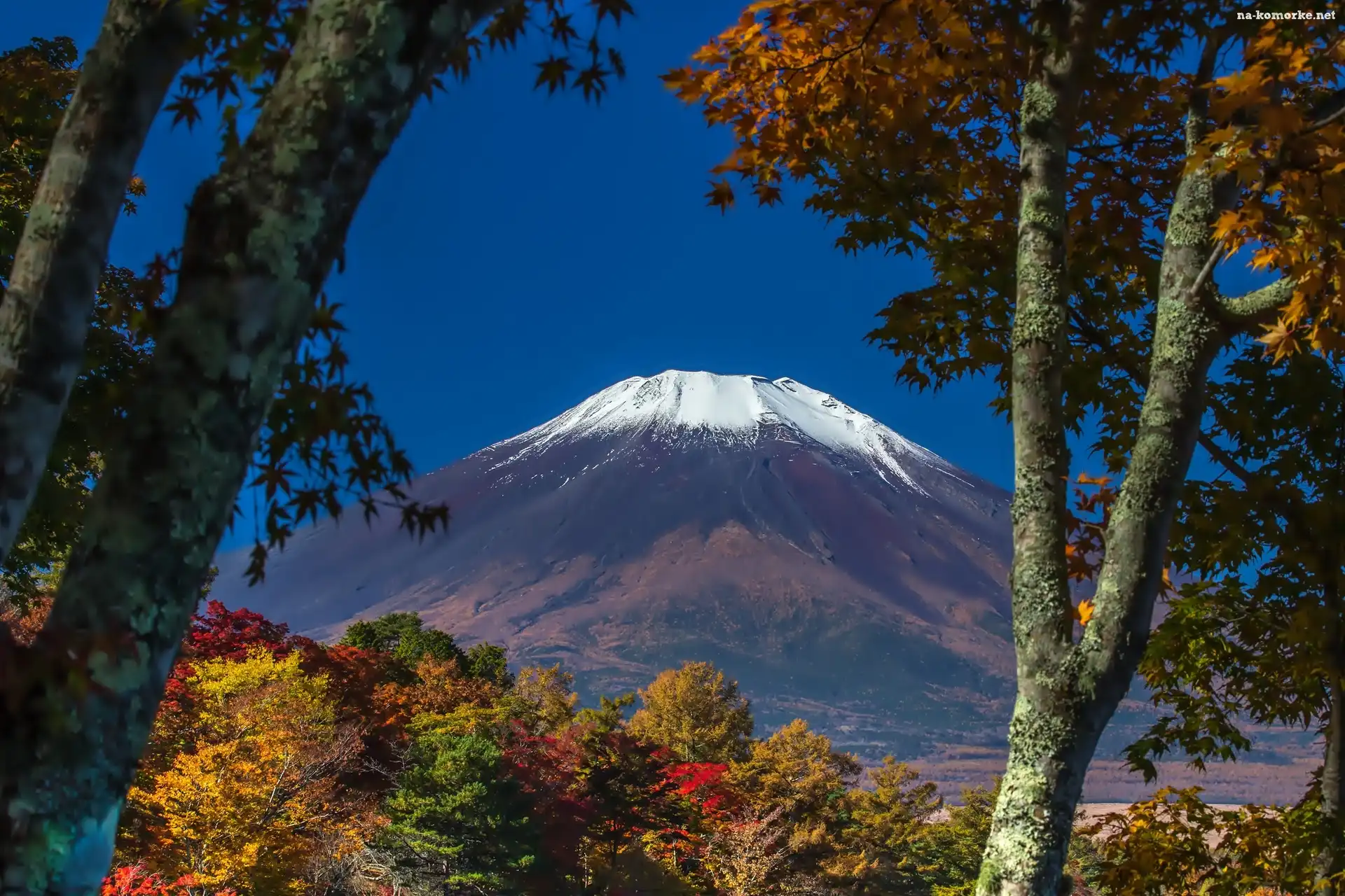 Wulkan, Góra, Fuji, Drzewa, Japonia na Komórkę