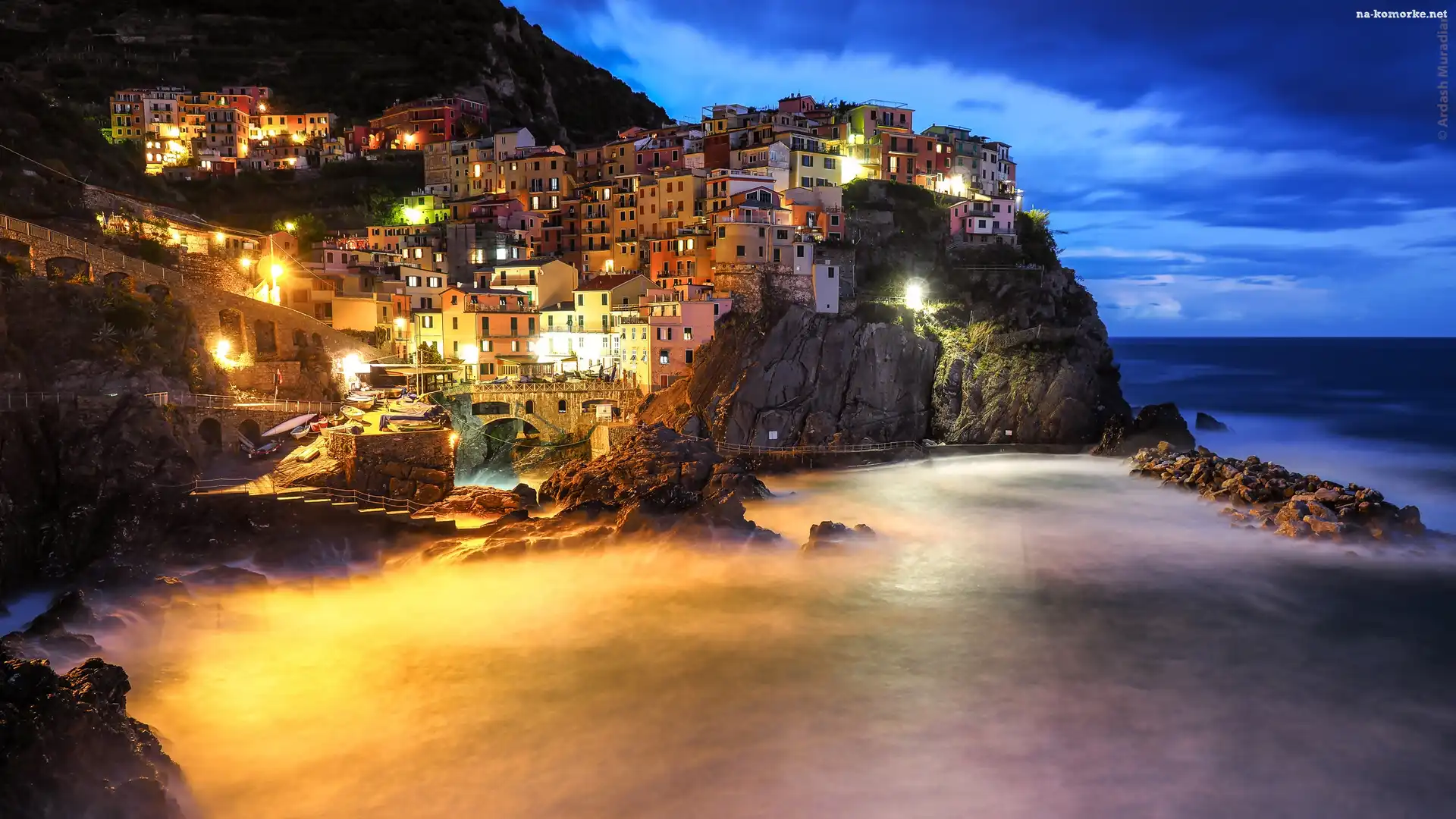 Wybrzeże, Włochy, Manarola, Domy, Skały na Komórkę