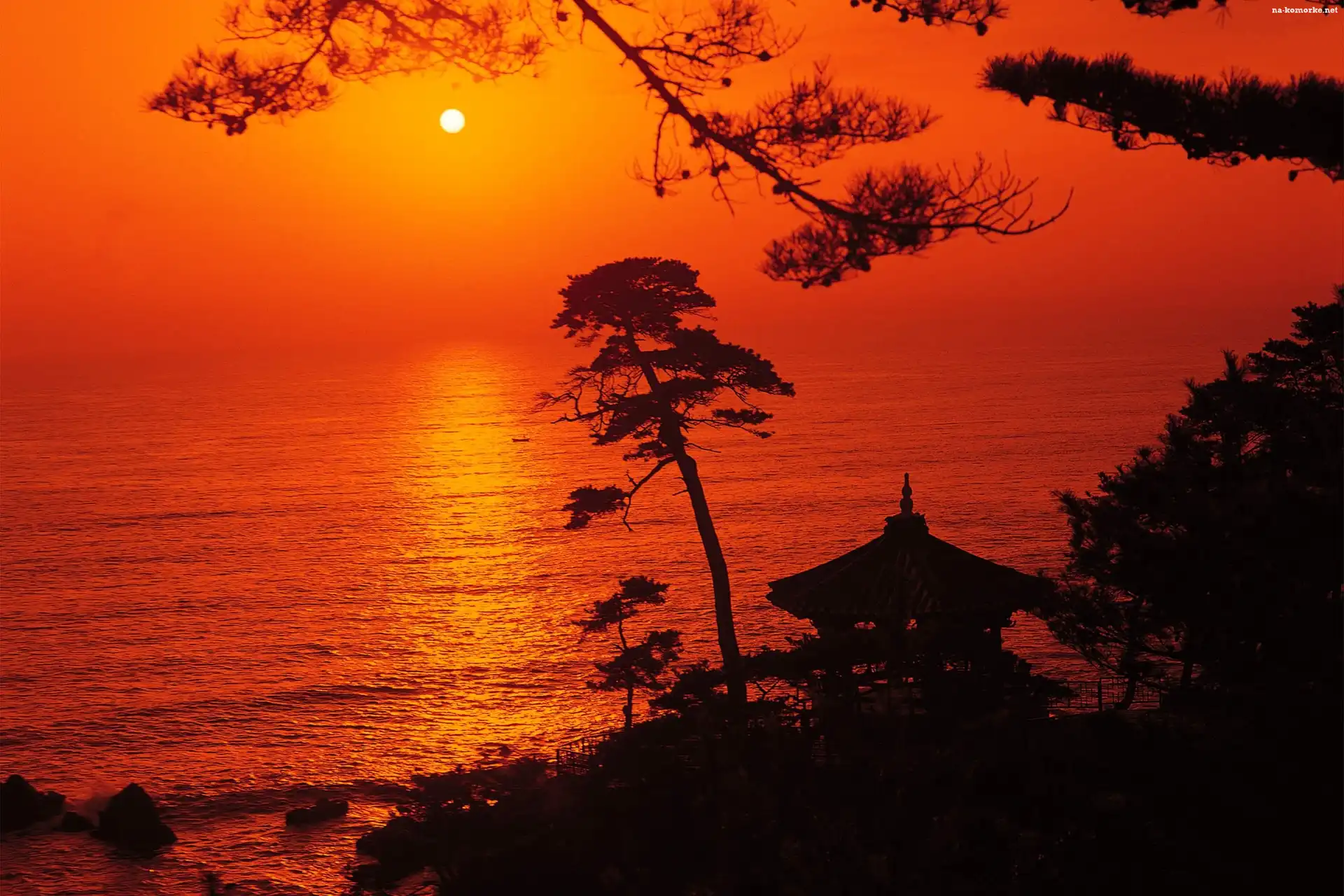 Wybrzeże, Słońca, Korei, Zachód na Komórkę
