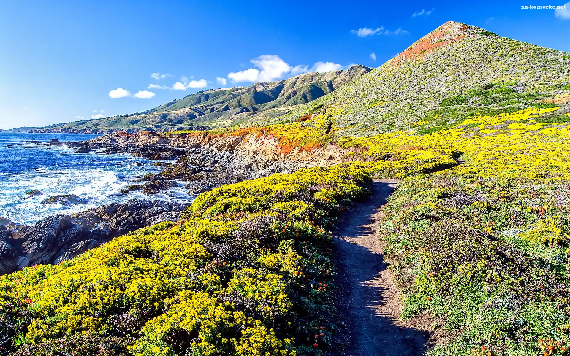 Wybrzeże, Krzewy, Morze, Góry na Komórkę