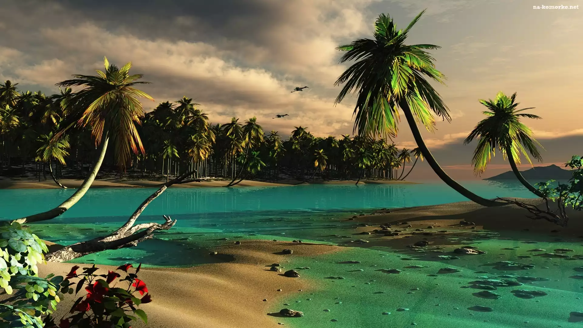 Wybrzeże, Palmy, Plaża, Wyspa na Komórkę