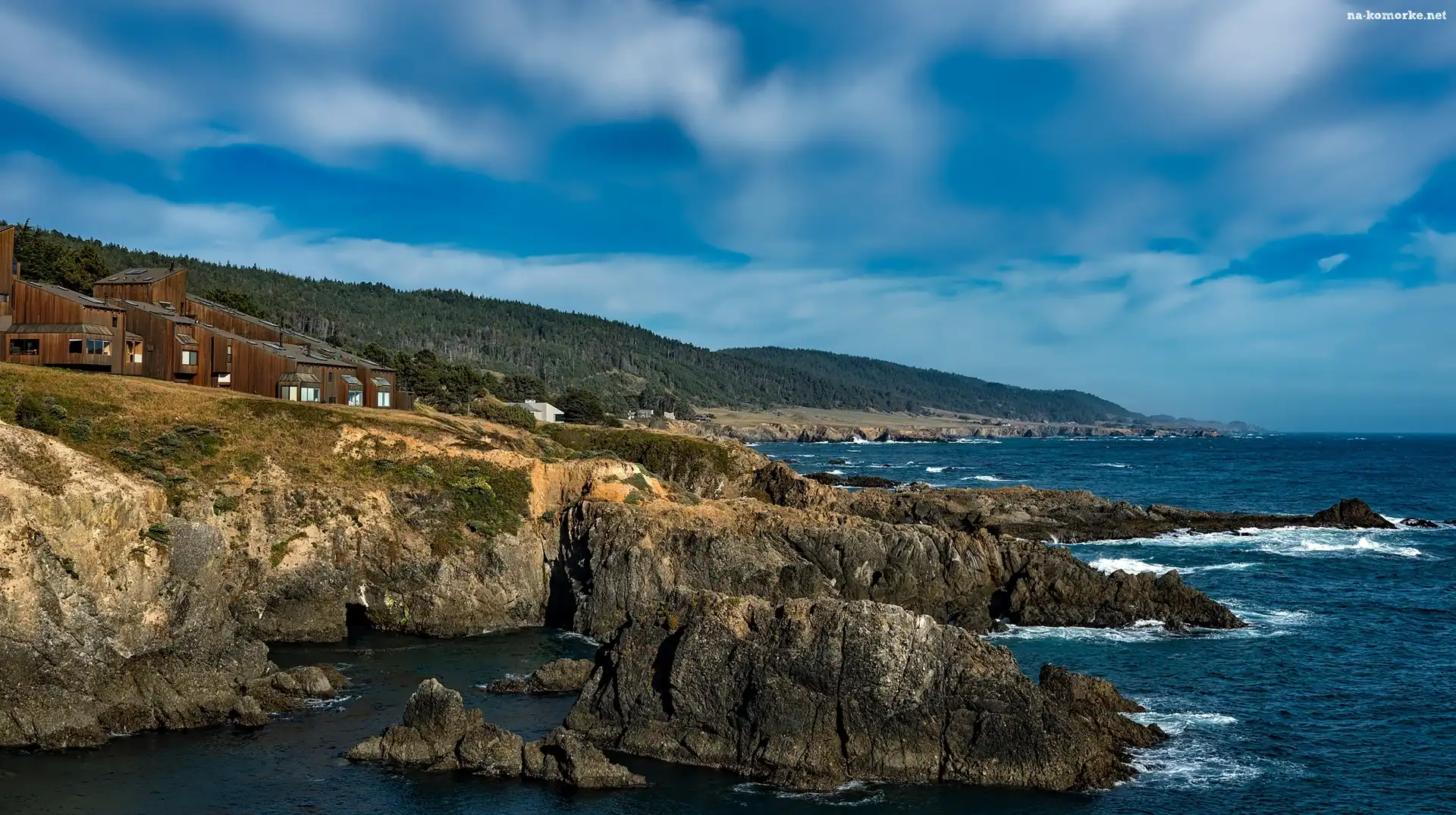 Wybrzeże, Osada, Skały, Morze na Komórkę
