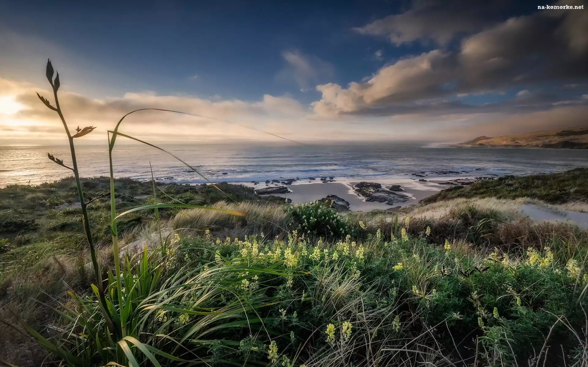 Wybrzeże, Góry, Trawy, Kwiaty na Komórkę