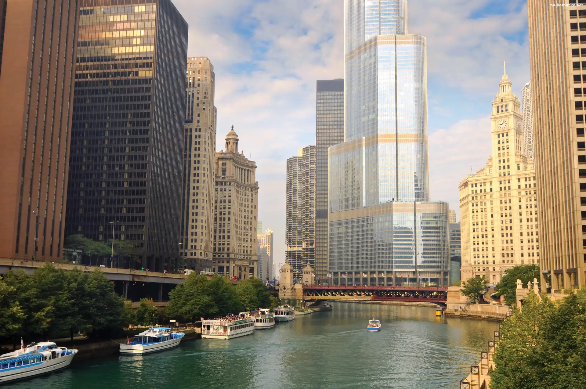Wycieczkowe, Miasto, Wieżowce, Rzeka, Statki na Komórkę