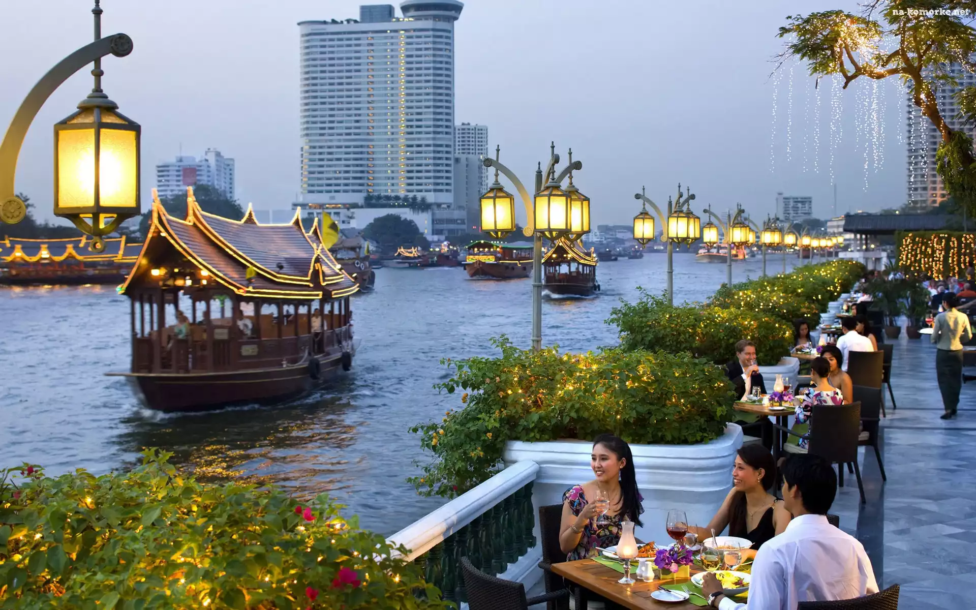 Wycieczkowe, Promenada, Rzeka, Japonia, Stateczki, Lampiony na Komórkę