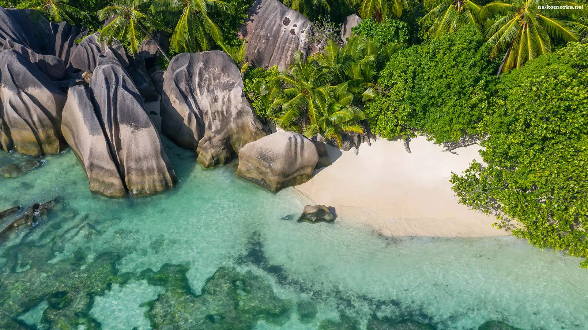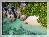 Wyspa La Digue, Plaża, Skały, Wyspa, Głazy, Roślinność, Morze, Seszele na Komórkę