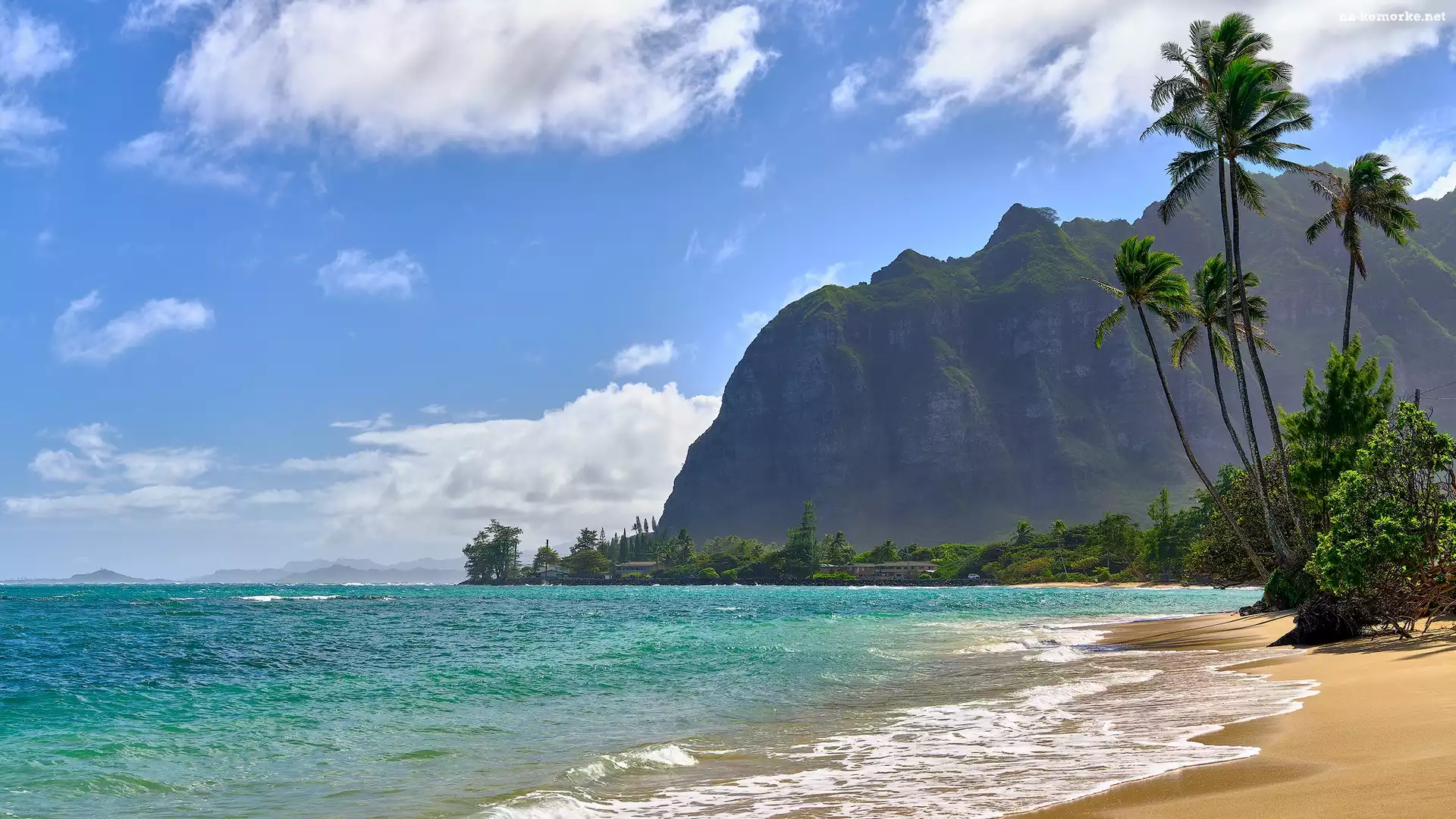 Wyspa Oahu, Plaża, Góra, Stany Zjednoczone, Skała, Palmy, Morze, Hawaje na Komórkę