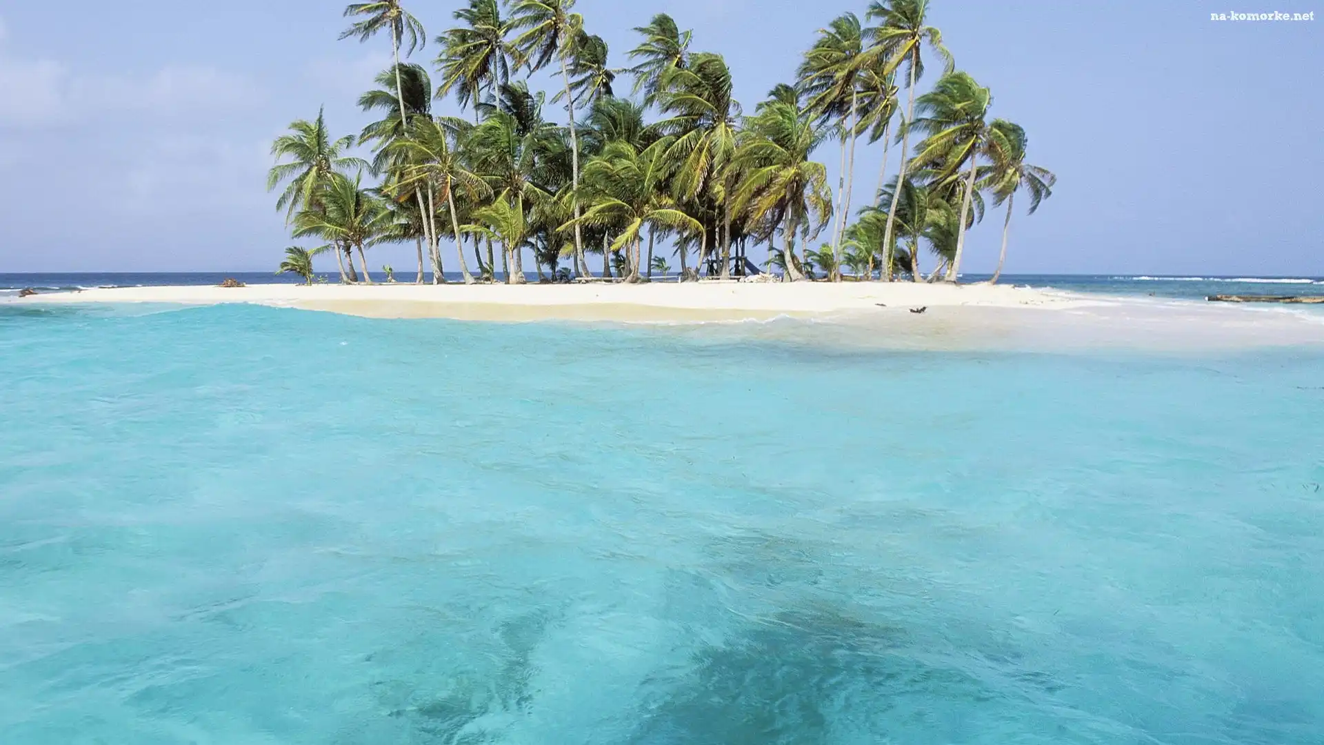 Wyspa, Fale, Palmy, Morze na Komórkę