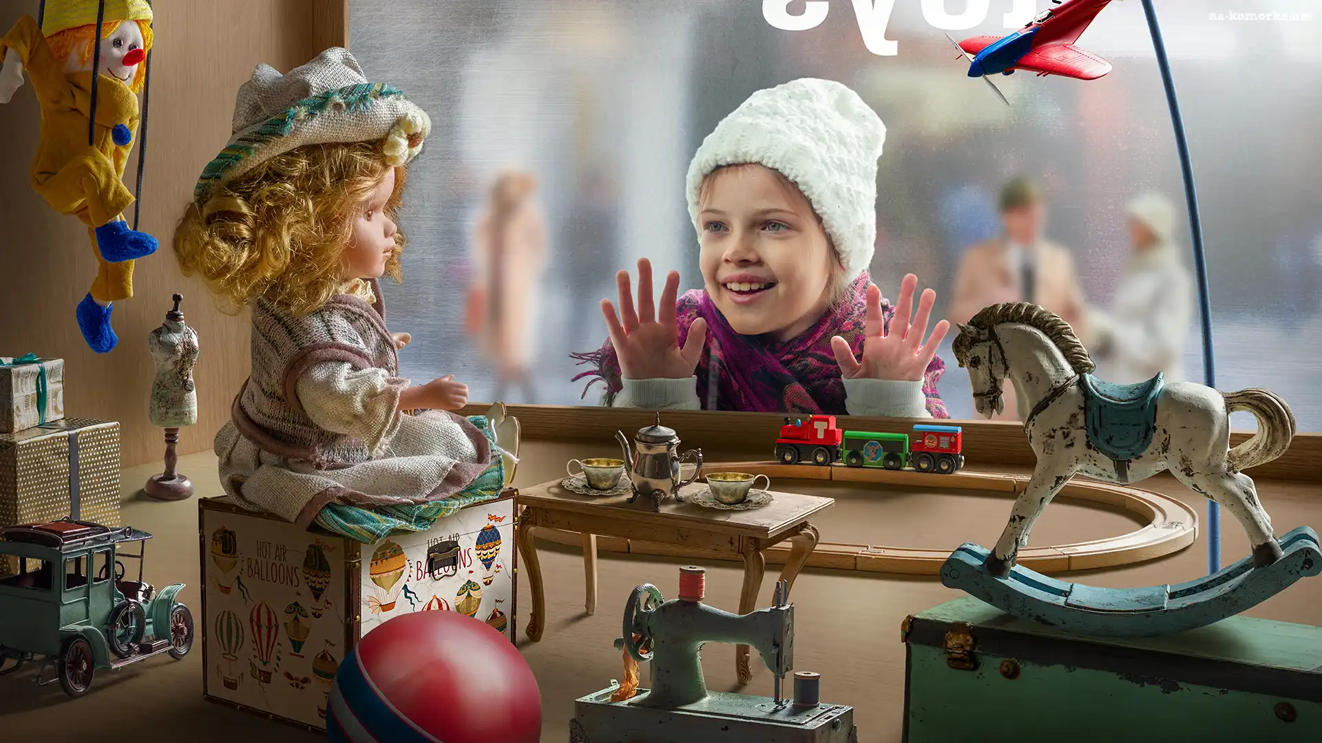 Wystawa, Szyba, Dziewczynka, Lalka, Sklep, Zabawki na Komórkę