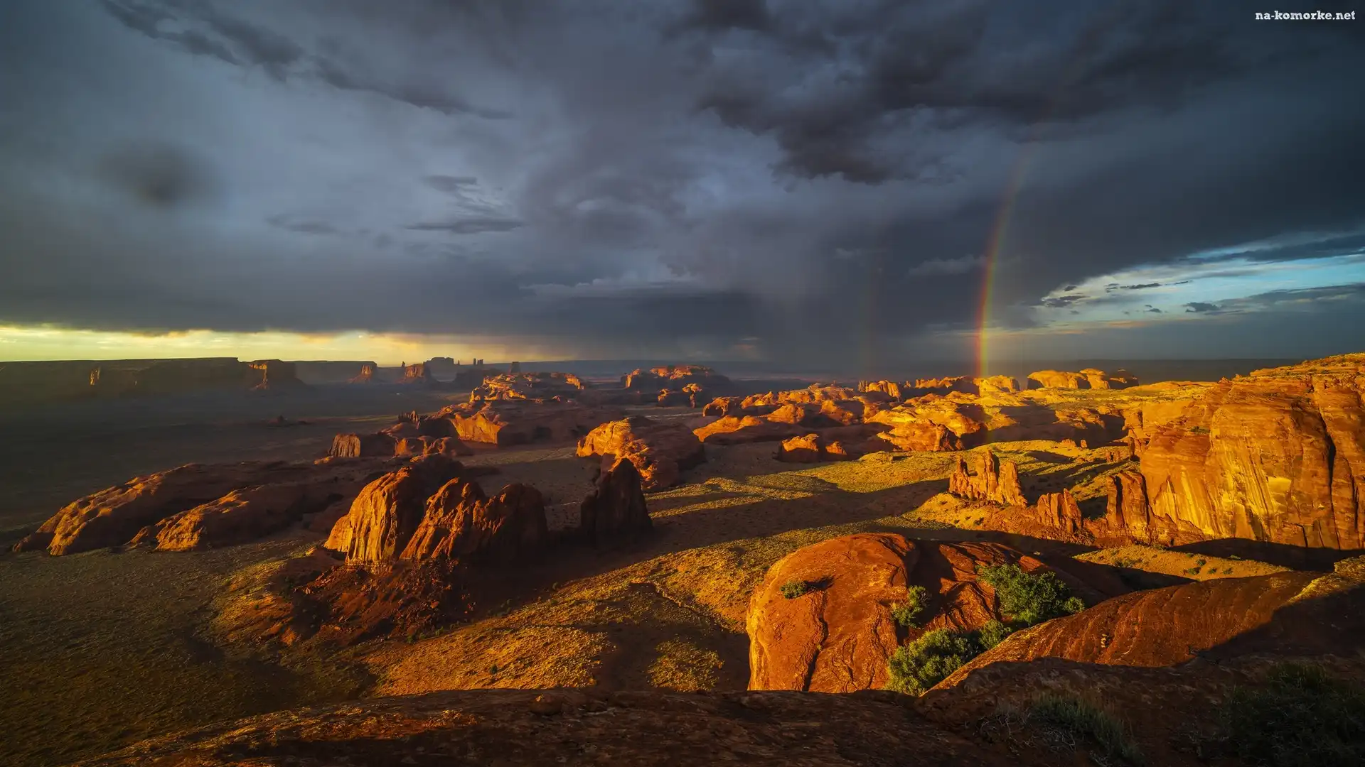 Ciemne, Dolina Pomników, Tęcza, Region Monument Valley, Wyżyna Kolorado, Stan Arizona, Stany Zjednoczone, Skały, Chmury na Komórkę |