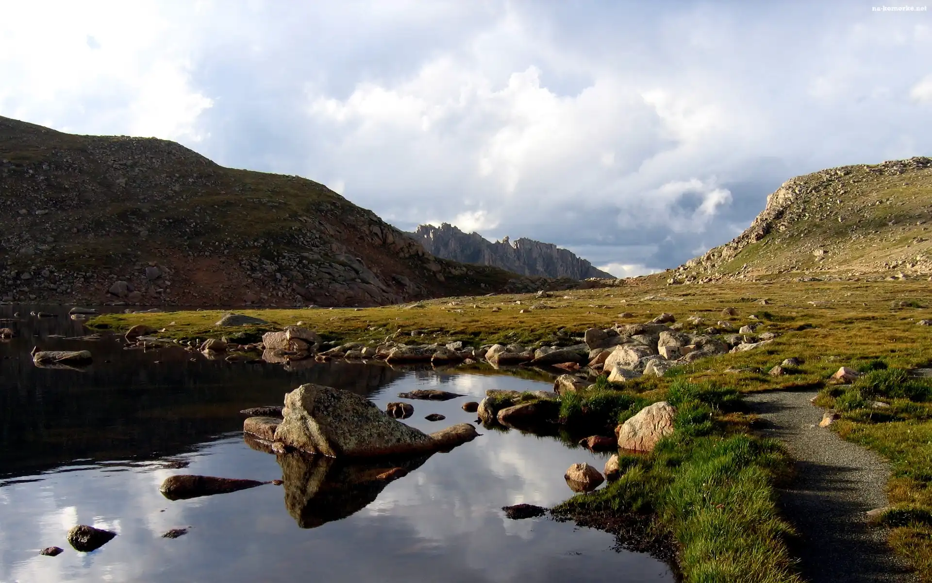 Wzgórza, Głazy, Łąka, Jezioro na Komórkę