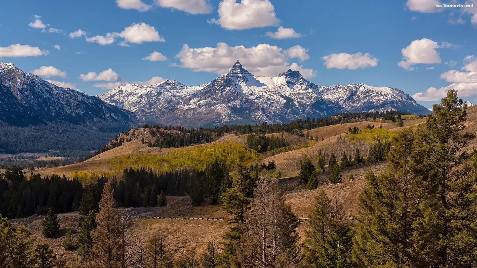 Wzgórza, Wyoming, Góry, Stany Zjednoczone, Szczyty, Drzewa, Absaroka Range na Komórkę