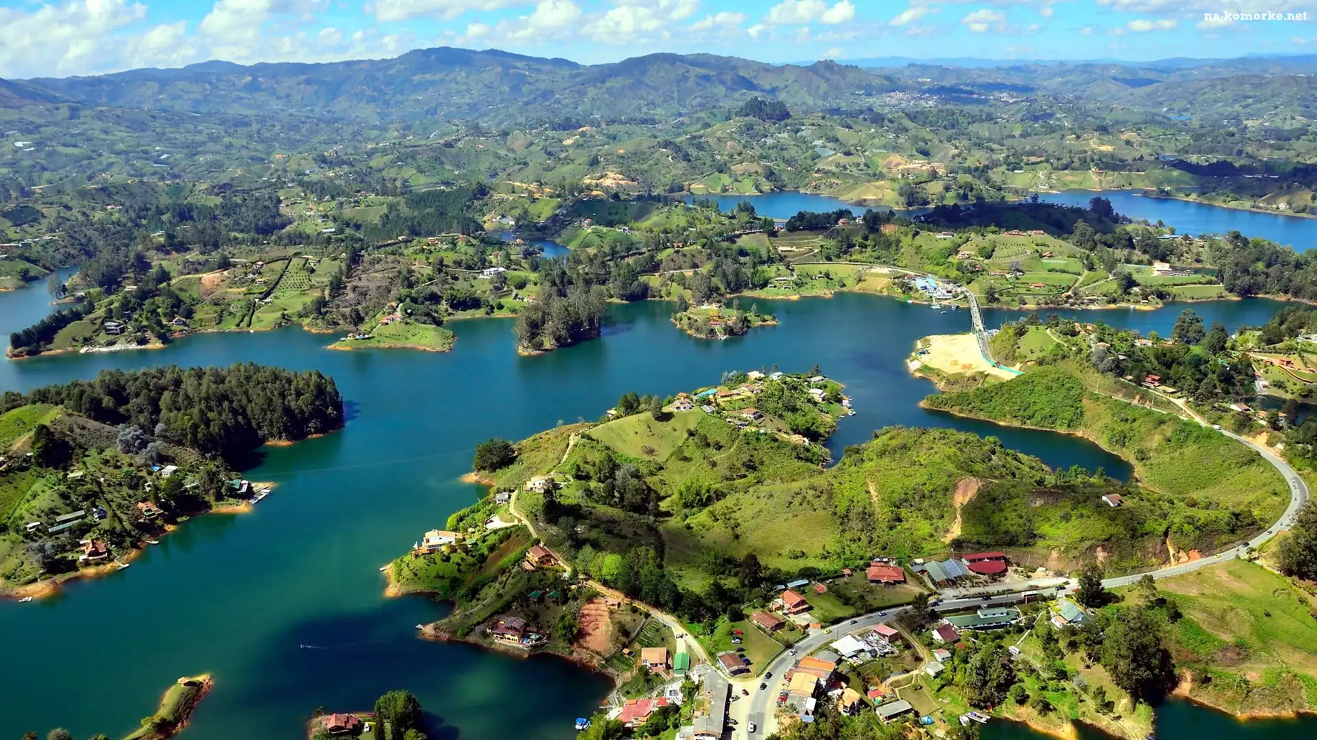 Wzgórza, Kolumbia, Guatapé, Miasto, Jeziora na Komórkę