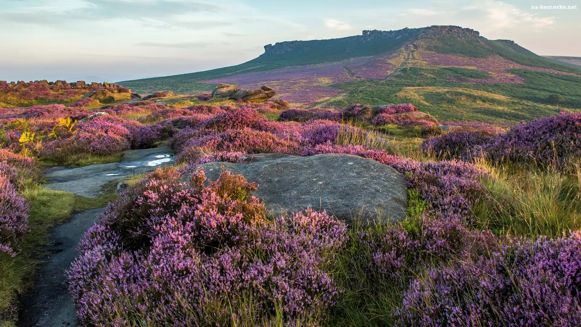 Wzgórza, Wrzosowisko, Skały, Wrzosy na Komórkę