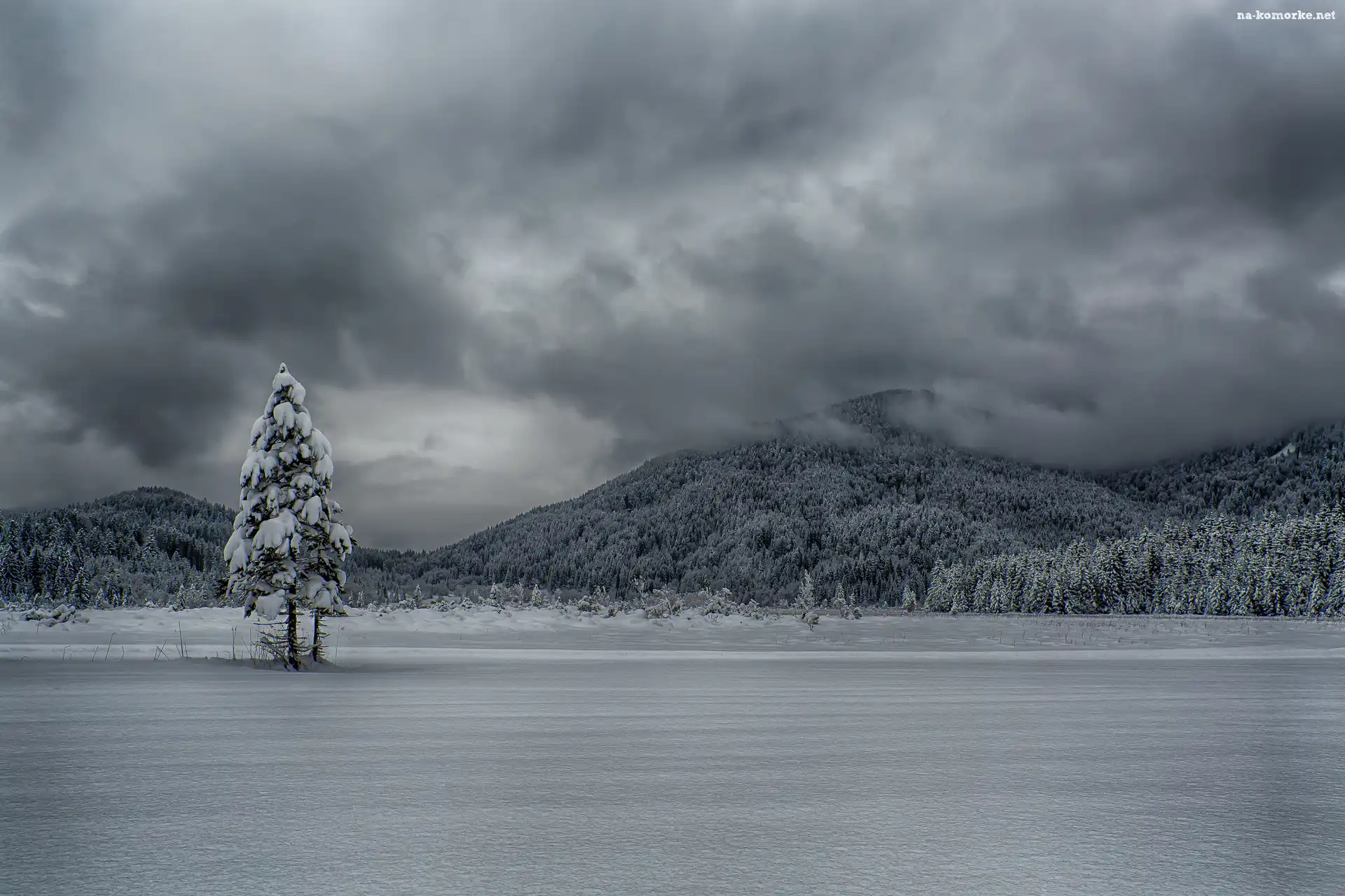 Góra, Śnieg Zima, Góry, Las Płatek, Śniegu Góry Las, Zielone, Ciemno, Światło, Drzewa, Przebijające Przebijające, Promienie, Słoneczne Zachód Słońca, Drzewa, Mgła Wodospad Drzewo, Przebijające, Promienie Kobiety, Zamarznięta, Tafla, Wody, Dłoń Żółto, Wysokie, Las, Krzewinki, Drzewa, Zielone Wzgórza, Drzewa, Zieleń Góry, Drzewa, Morze Niebo, Drzewa, Chmury