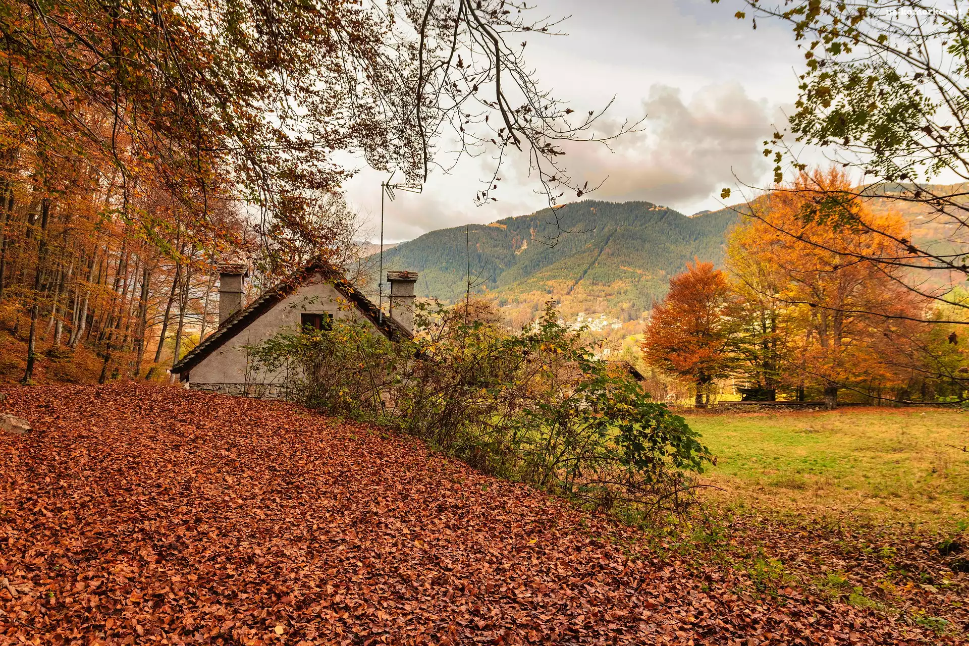 Drzewa, Jesień, Dom, Wzgórze, Liście, Opadłe na Komórkę