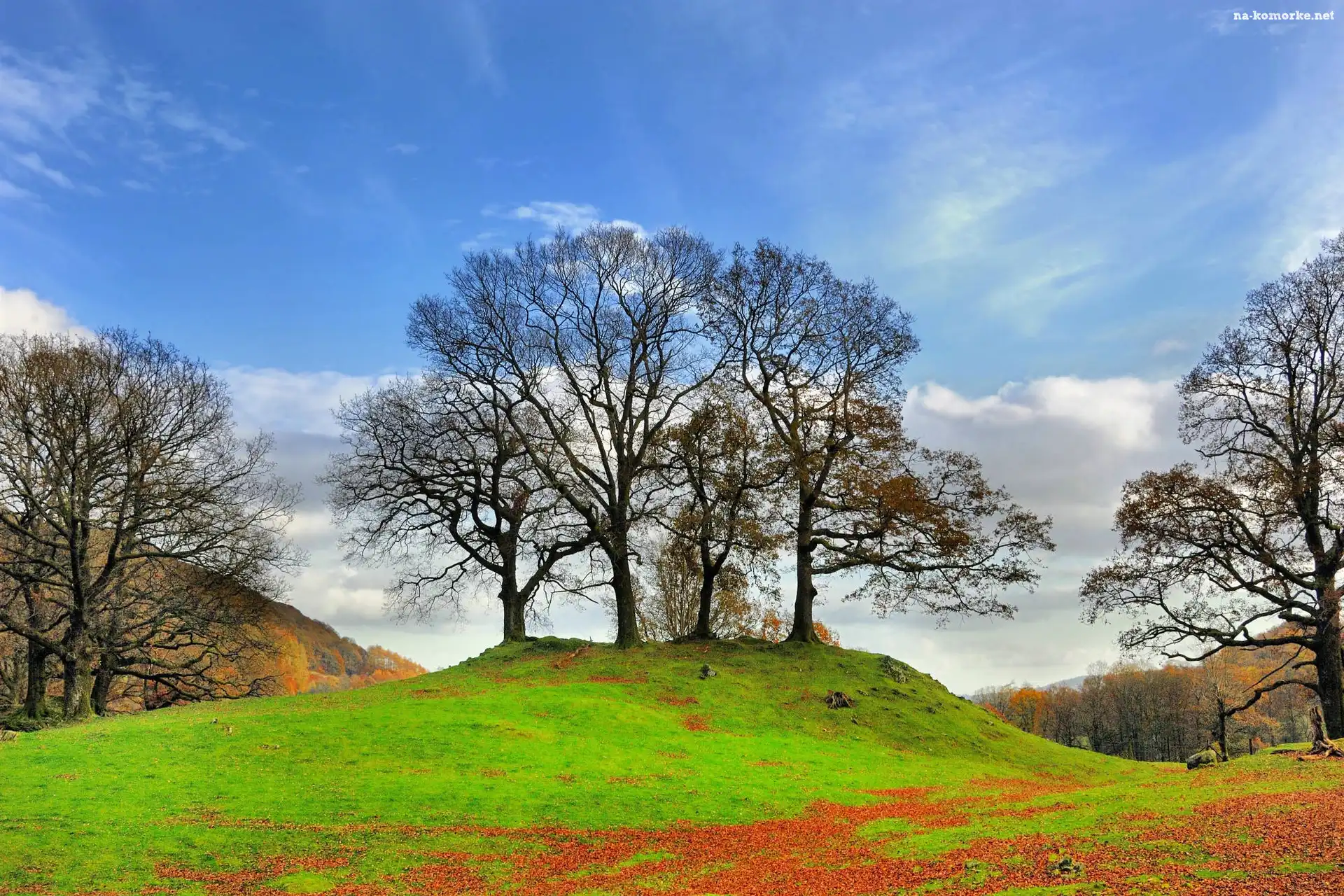 Wzniesienie, Późna, Jesień, Drzewa, Trawa na Komórkę