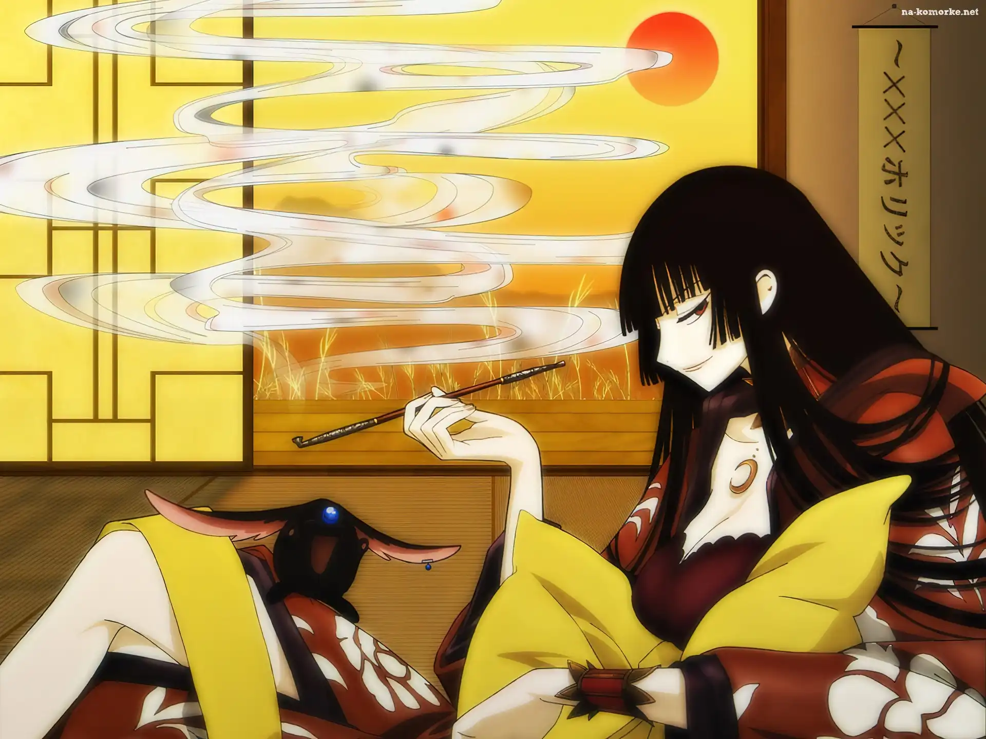 Xxxholic, poduszka, fajka, kobieta na Komórkę