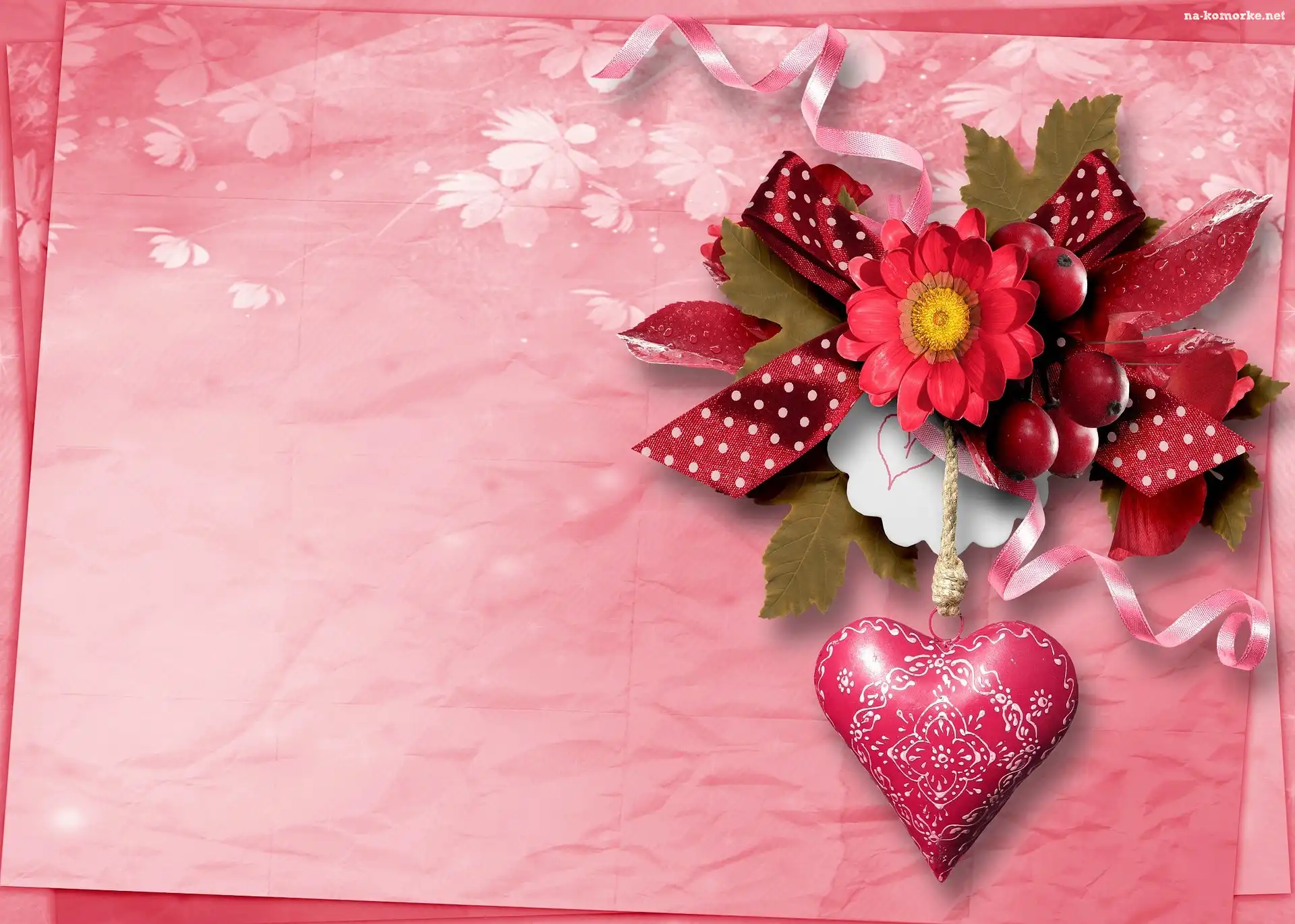 Ozdoba z kwiatów, Wstążki, Serce z ornamentem na Komórkę