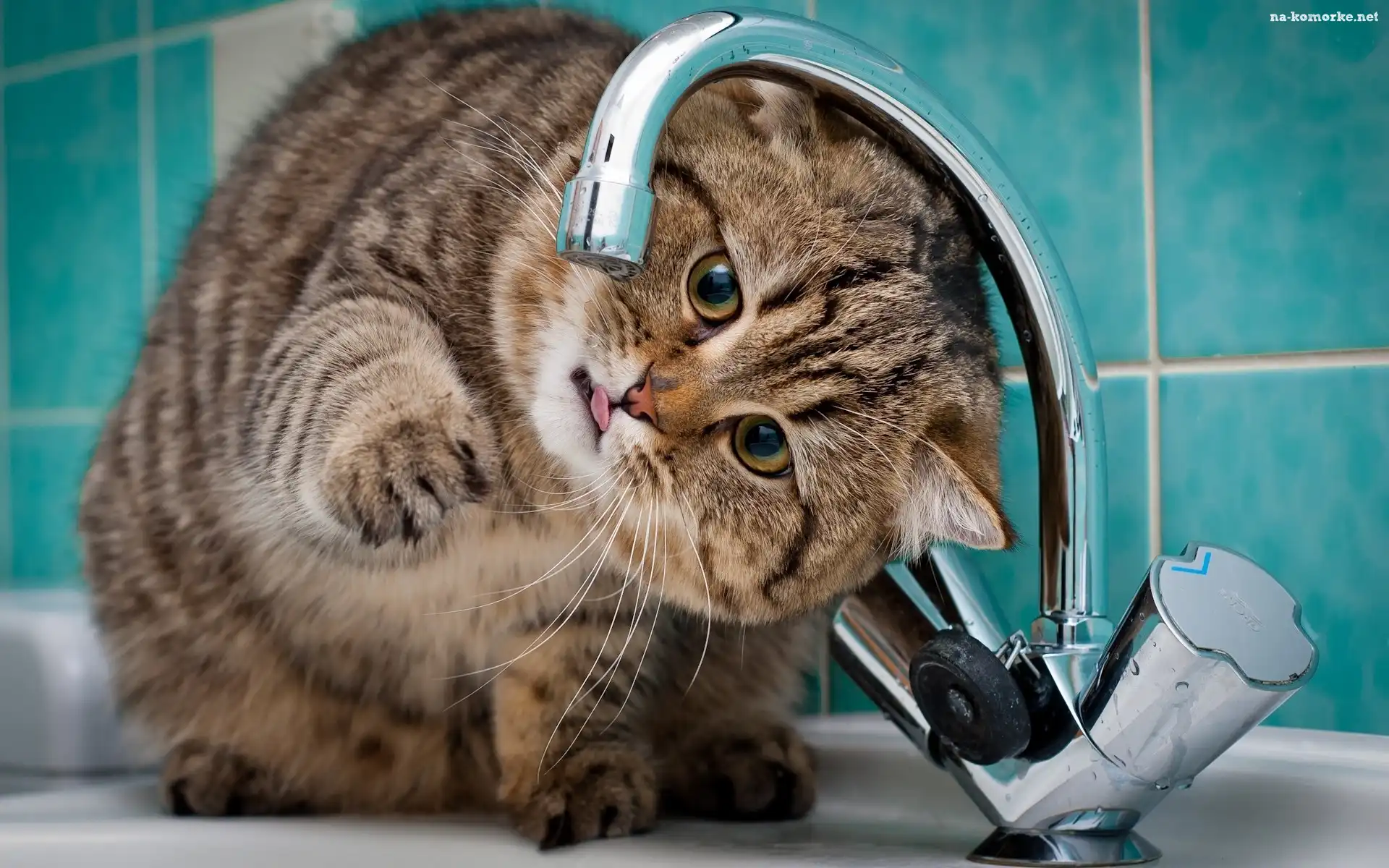 Zabawa, Kotek, Łazienka, Kran, Woda na Komórkę