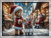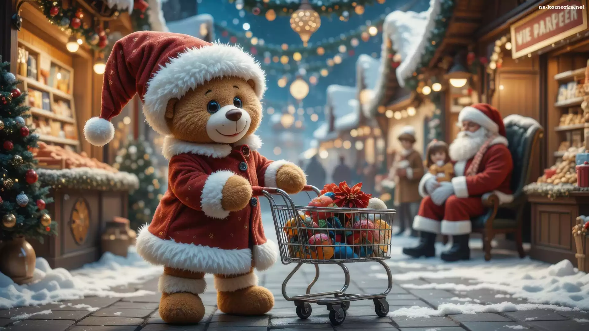 Pluszowy, Prezenty, Czapka, Świąteczne, Wózek, Jarmark, Miś, Zabawki na Komórkę
