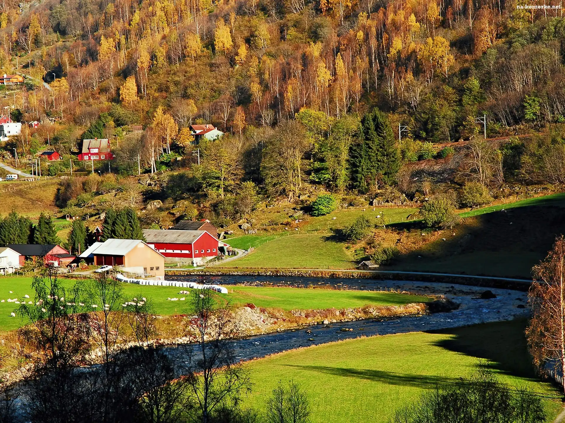 Jesień, Zabudowania, Rzeczka na Komórkę
