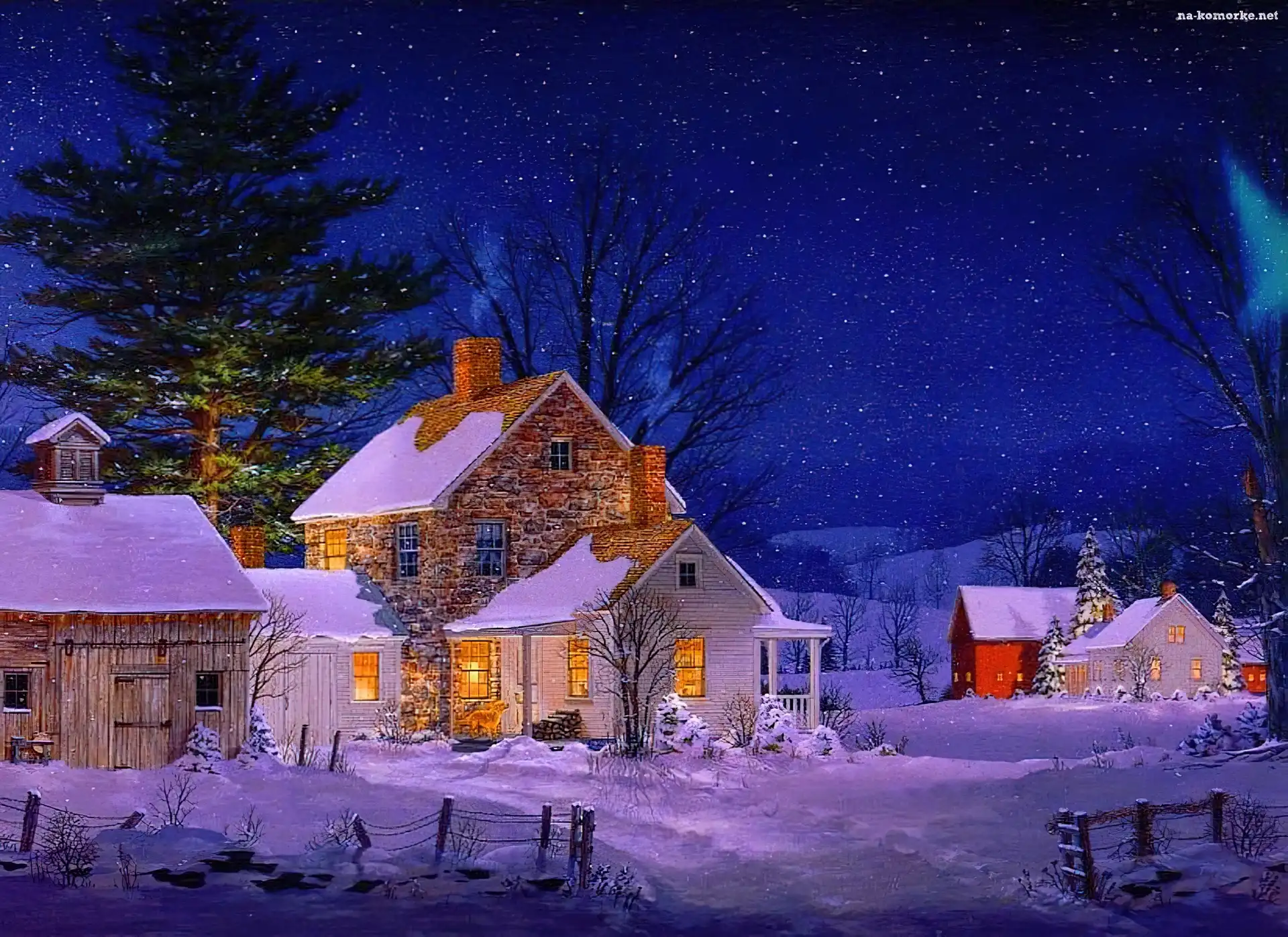 Zima, Noc, Zabudowania na Komórkę