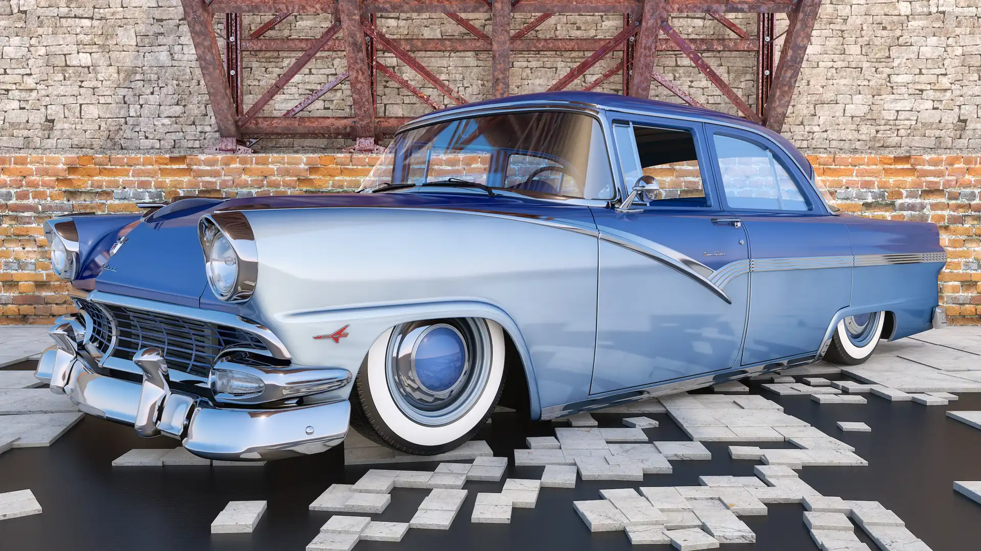 Niebieski, Zabytkowy, Ford Fairlane Town Sedan, 1956 na Komórkę