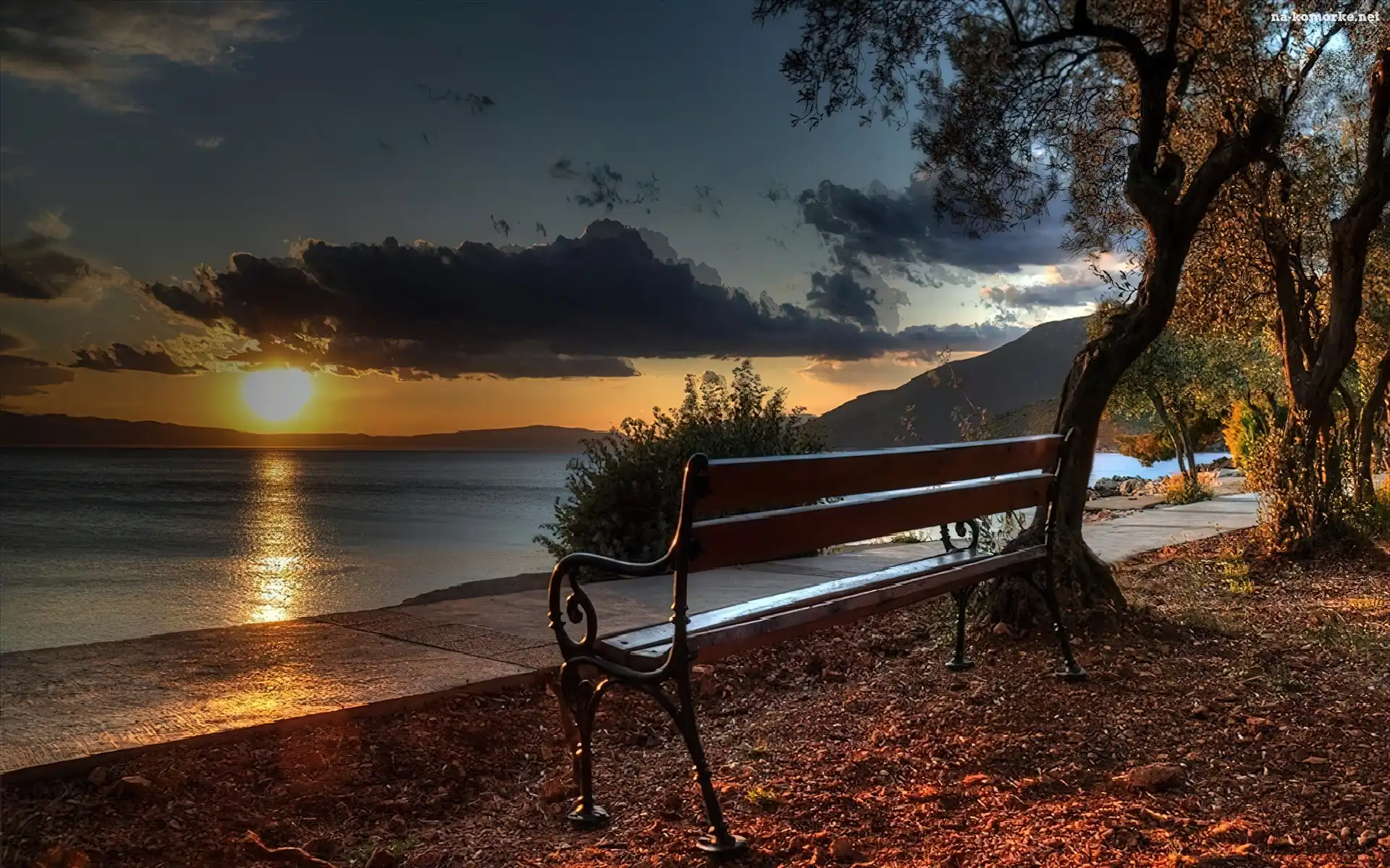 Zachód Słońca, Ławka, Morze na Komórkę
