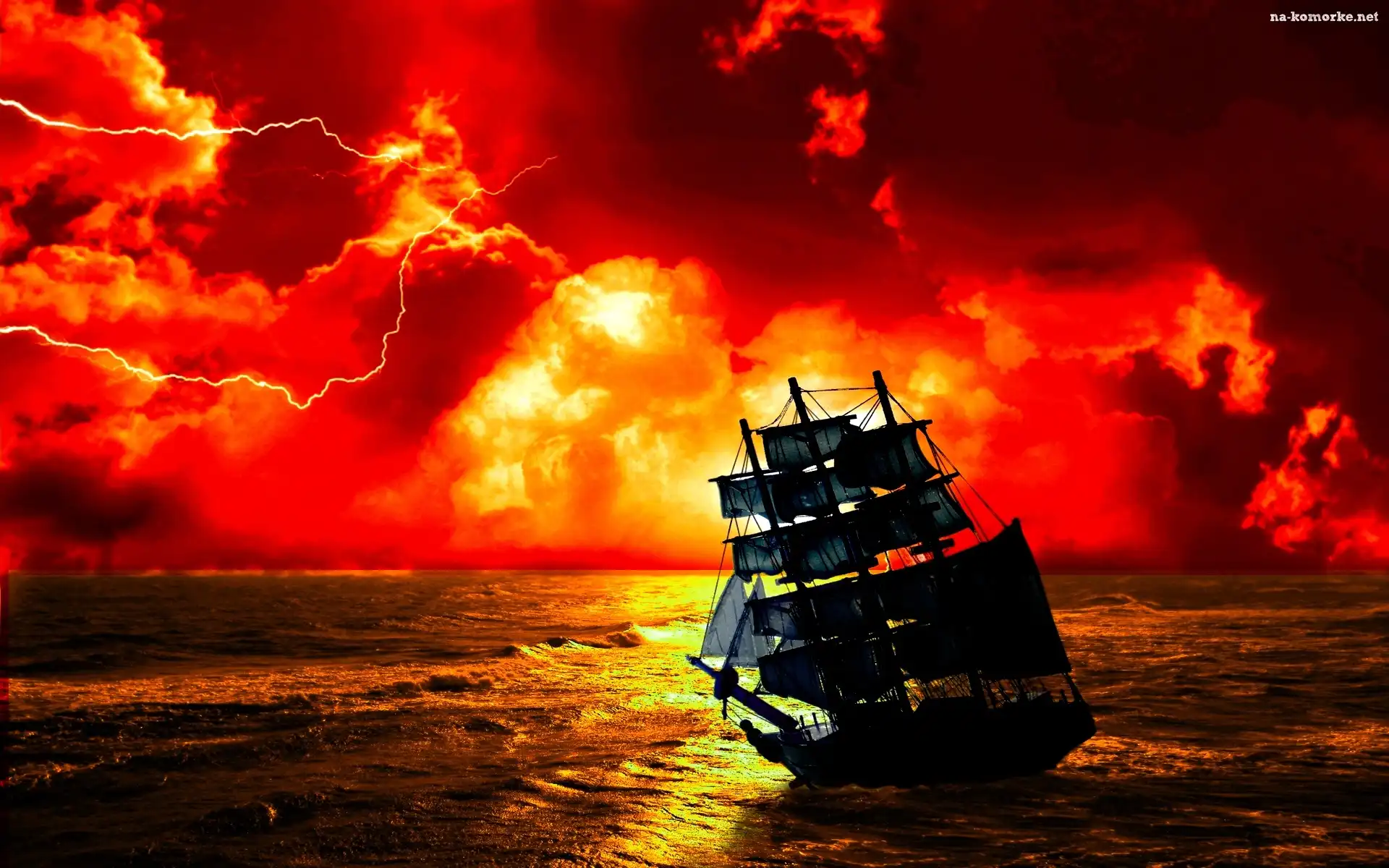 Zachód, Burza, Żaglowiec, Woda, Chmury, Słońca na Komórkę
