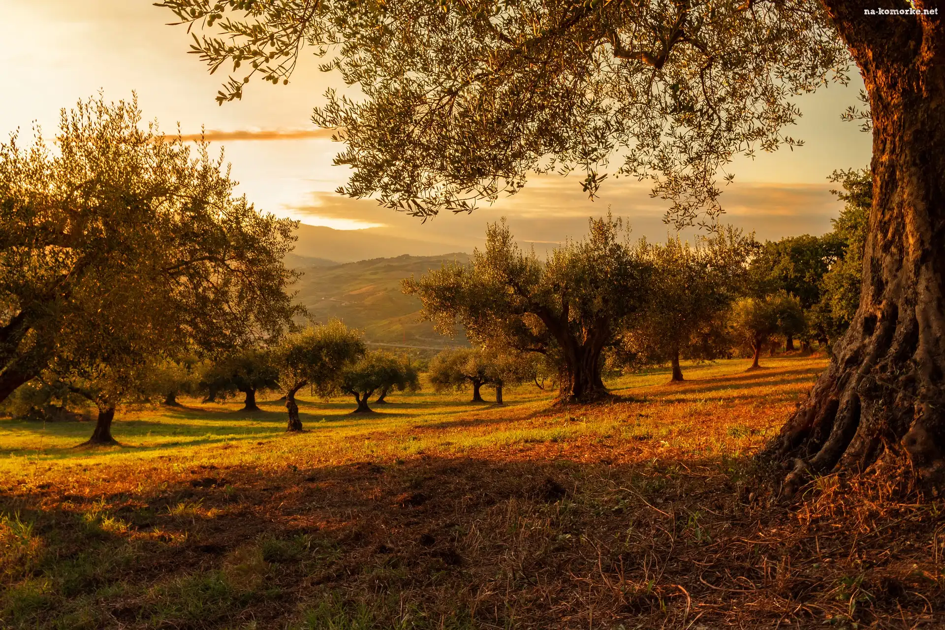 Zachód słońca, Drzewa, Rośliny na Komórkę