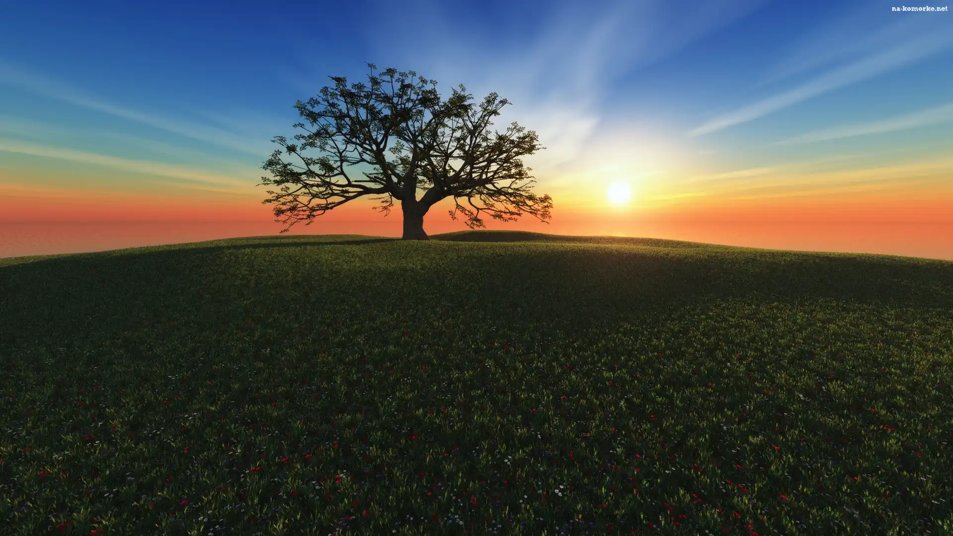 Zachód Słońca, Drzewo, Łąka na Komórkę