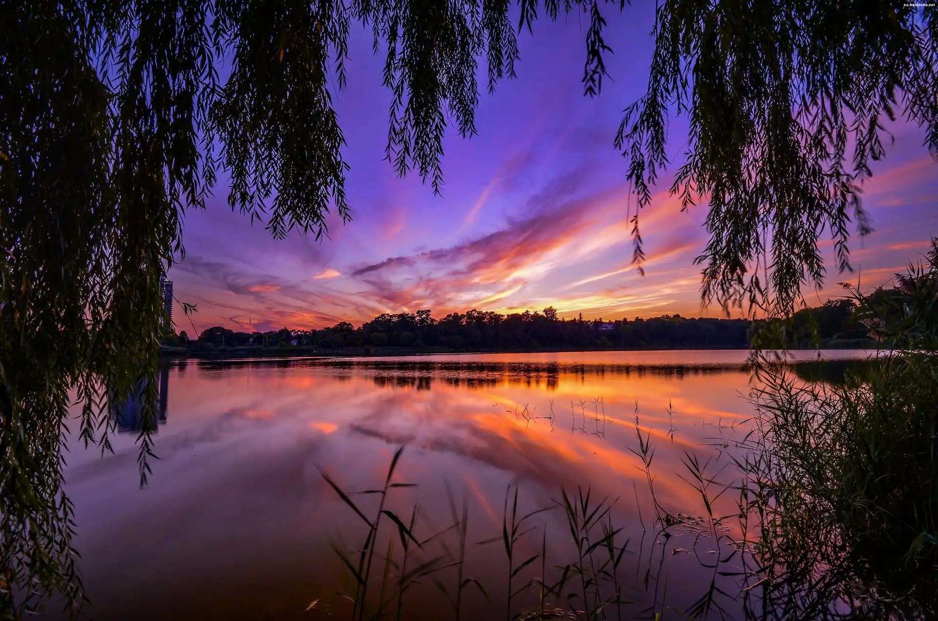 Zachód Słońca, Rzeka, Gałęzie Drzew na Komórkę