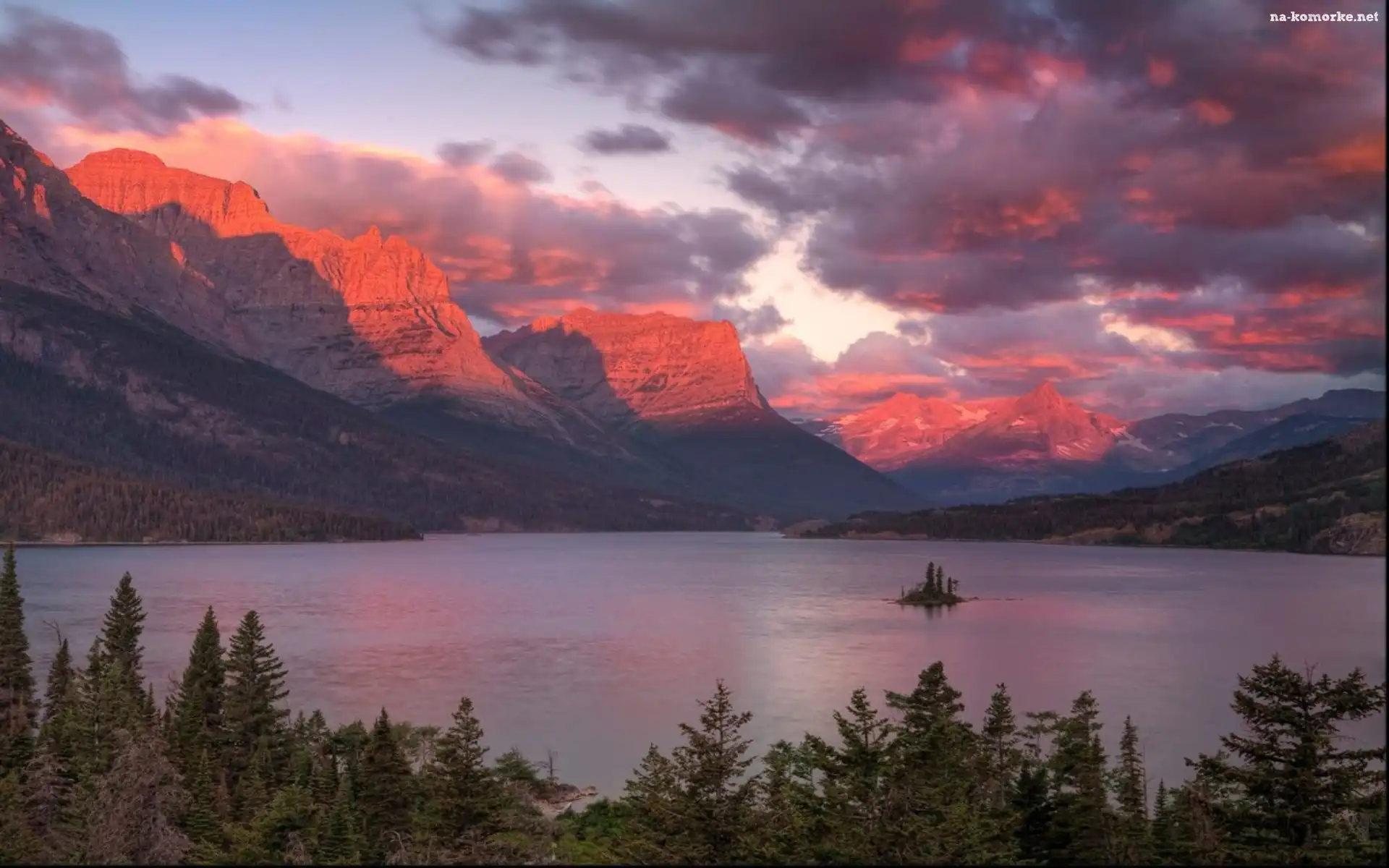 Zachód słońca, Chmury, Góry, Jezioro na Komórkę