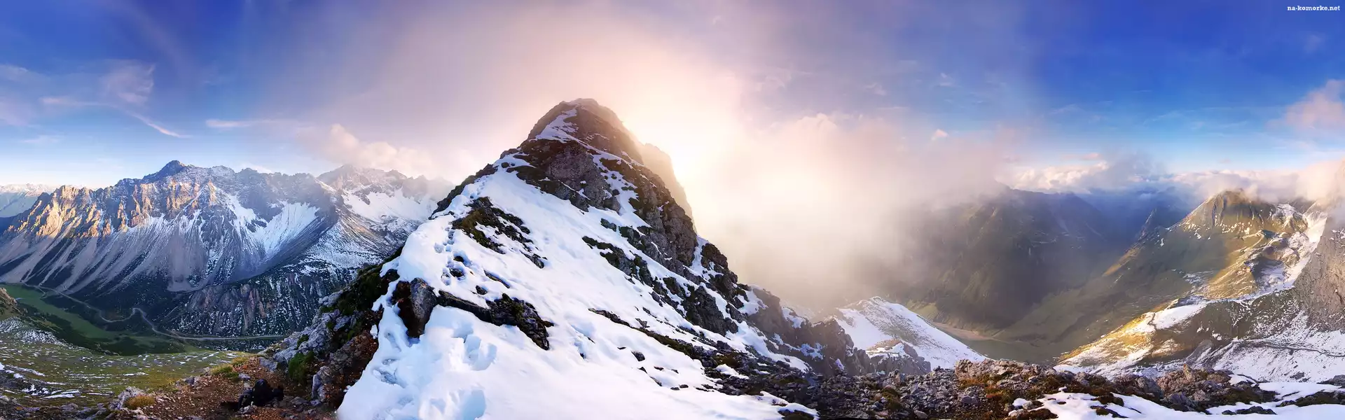 Snowbording, śnieg, deska, snowboardzista Góra, Jeziora, Niebo Ognik, Szkarłatny, Szadź Ścieżka, Leśna, Zima Góry, Las, Domki Zima, Kryształki, Lodu Zimowe, Drzewa, Zaspy, Śnieżne Boże Narodzenie, Zima Zima, Góry, Alaska Zima Sople, Zbocze, Góry Ryś, Zima, Śnieg Góry, Chmurki, Jeziorko Góra