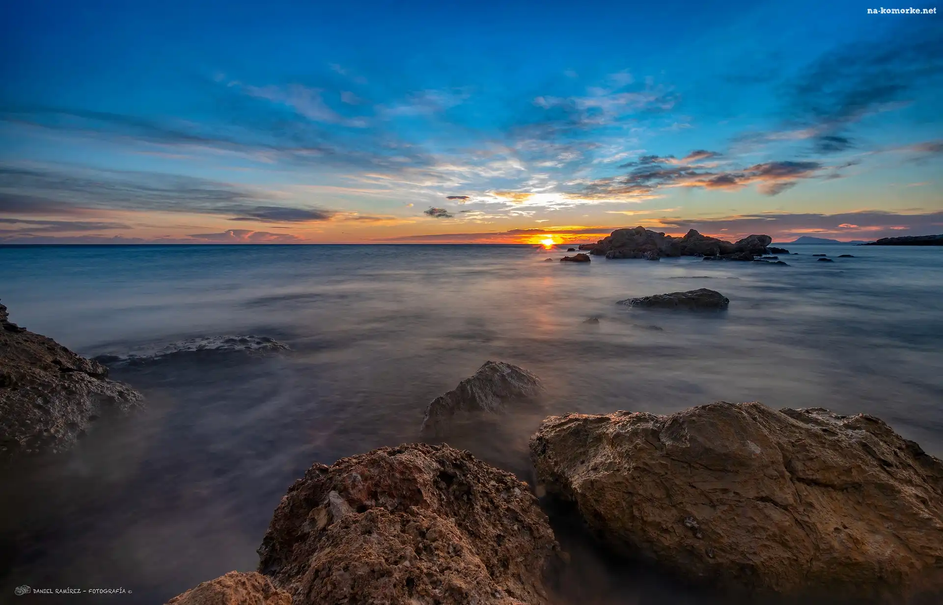 Hiszpania, Zachód słońca, Morze Śródziemne, Skały, Walencja na Komórkę