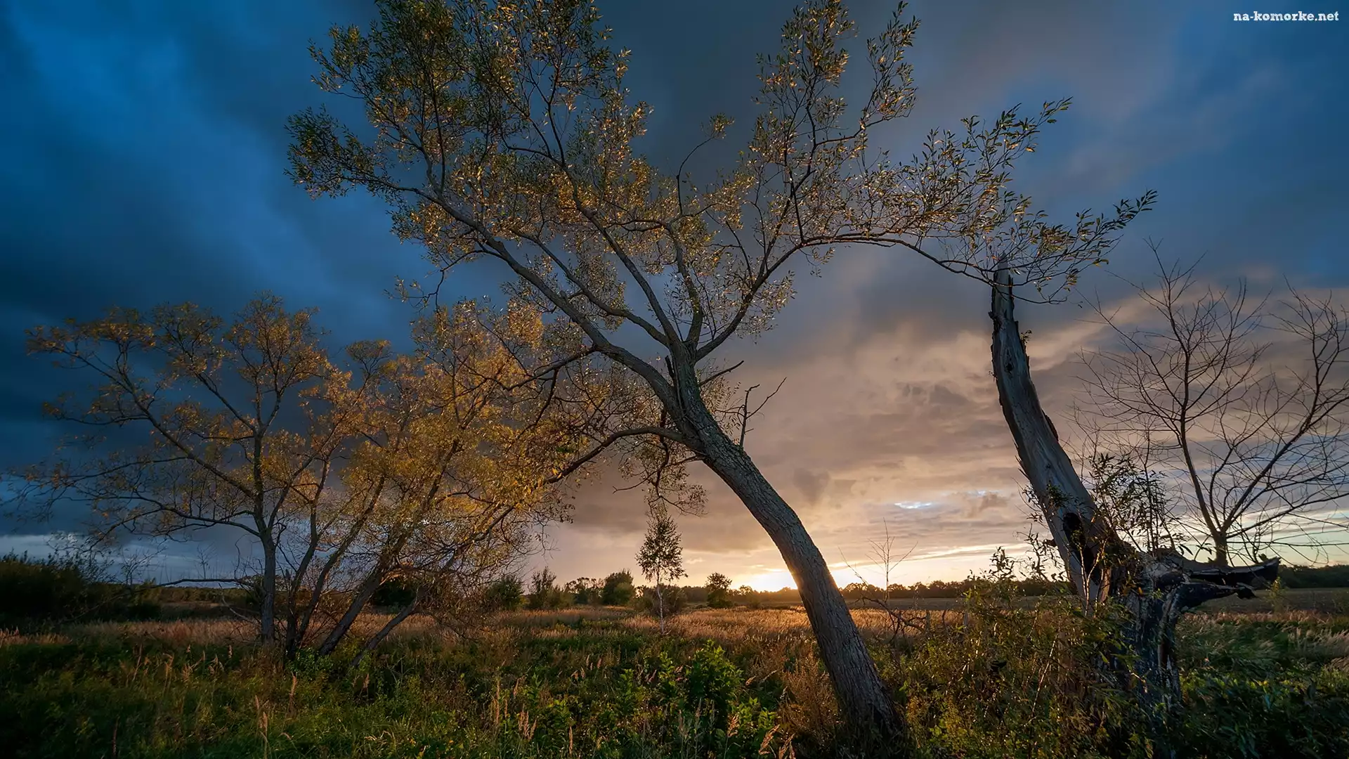 Zachód słońca, Jesień, Drzewa na Komórkę