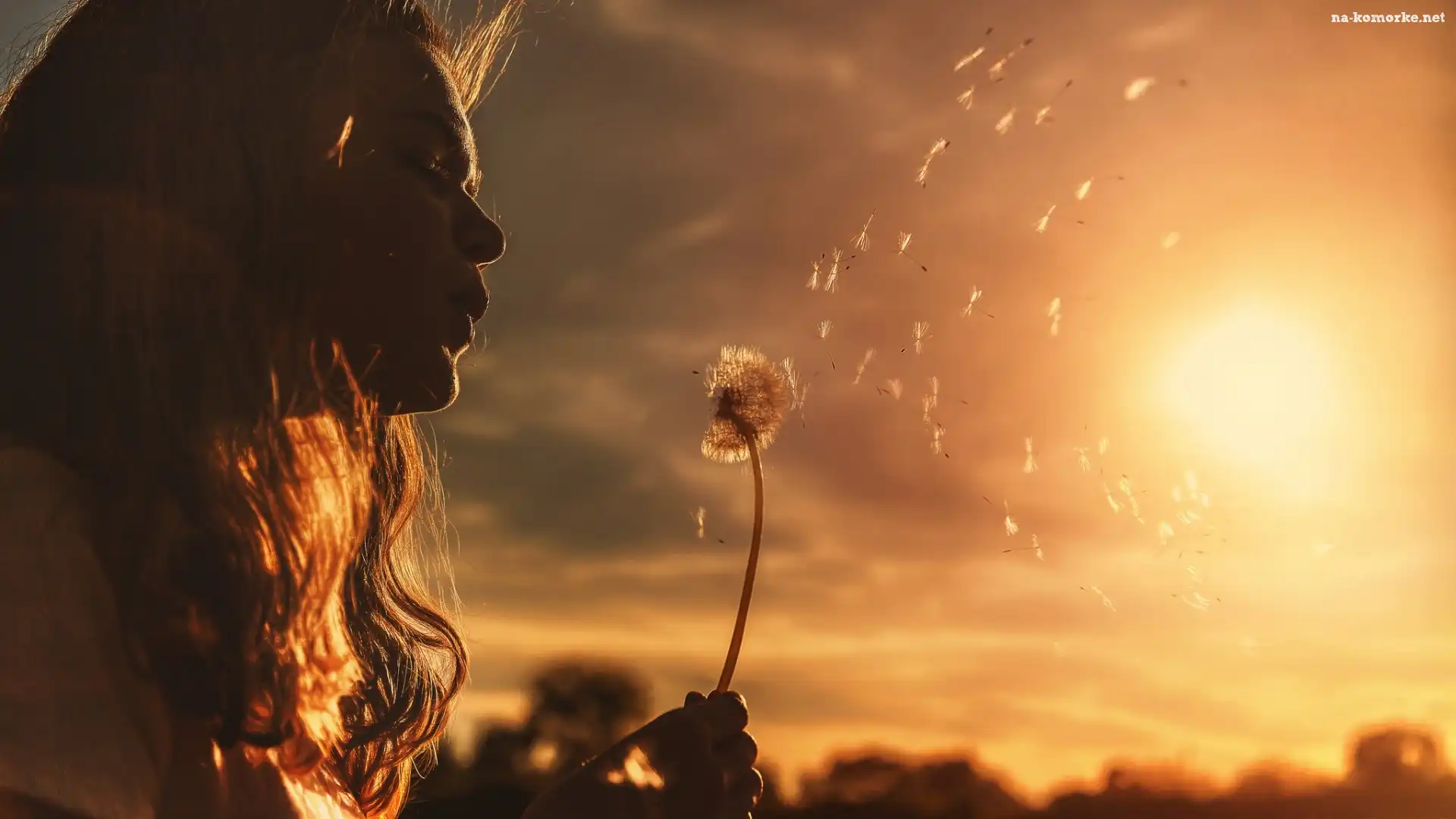 Zachód słońca, Kobieta, Dmuchawiec na Komórkę