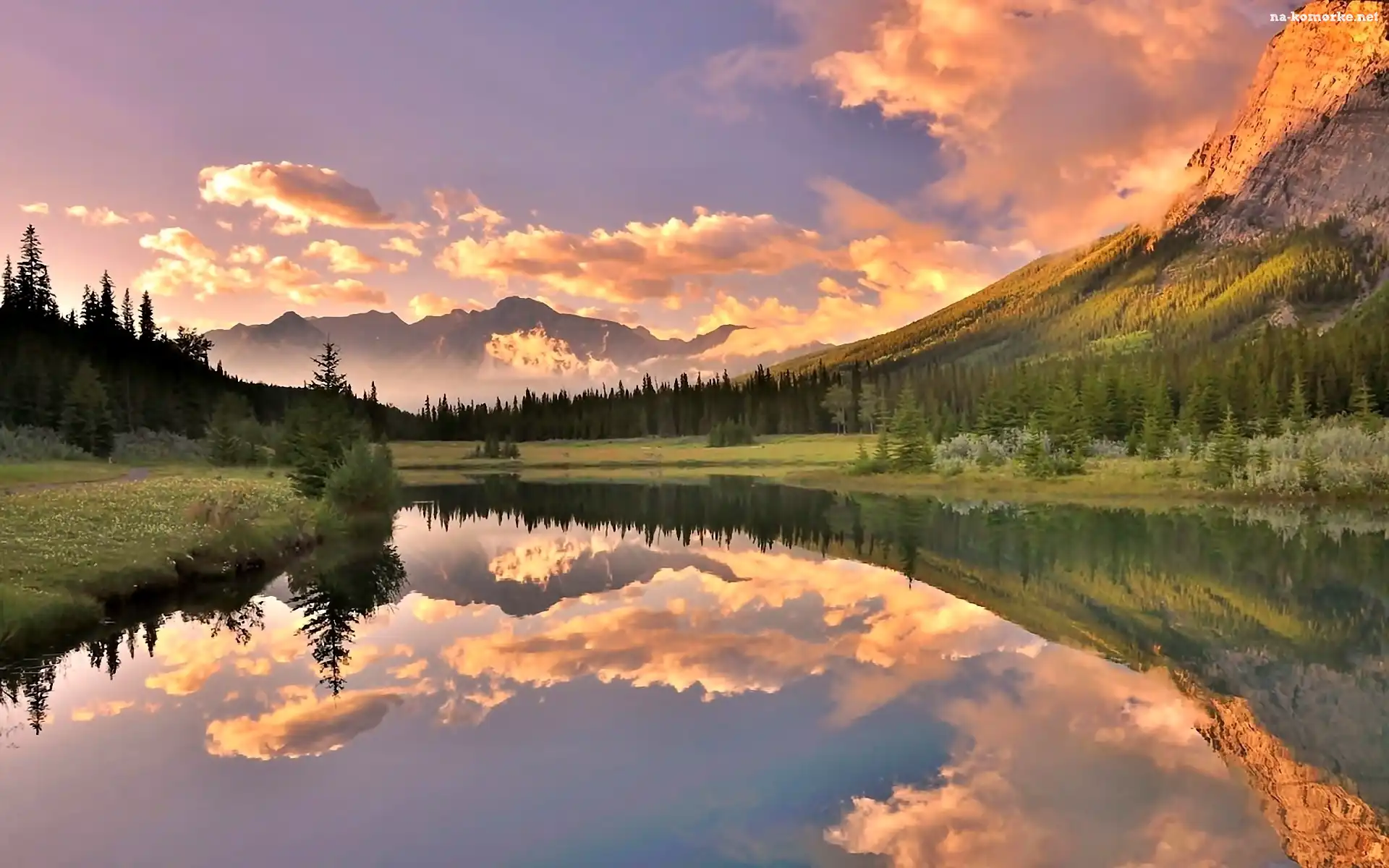 Zachód, Góry, Jezioro, Odbicie, Lasy, Słońca na Komórkę
