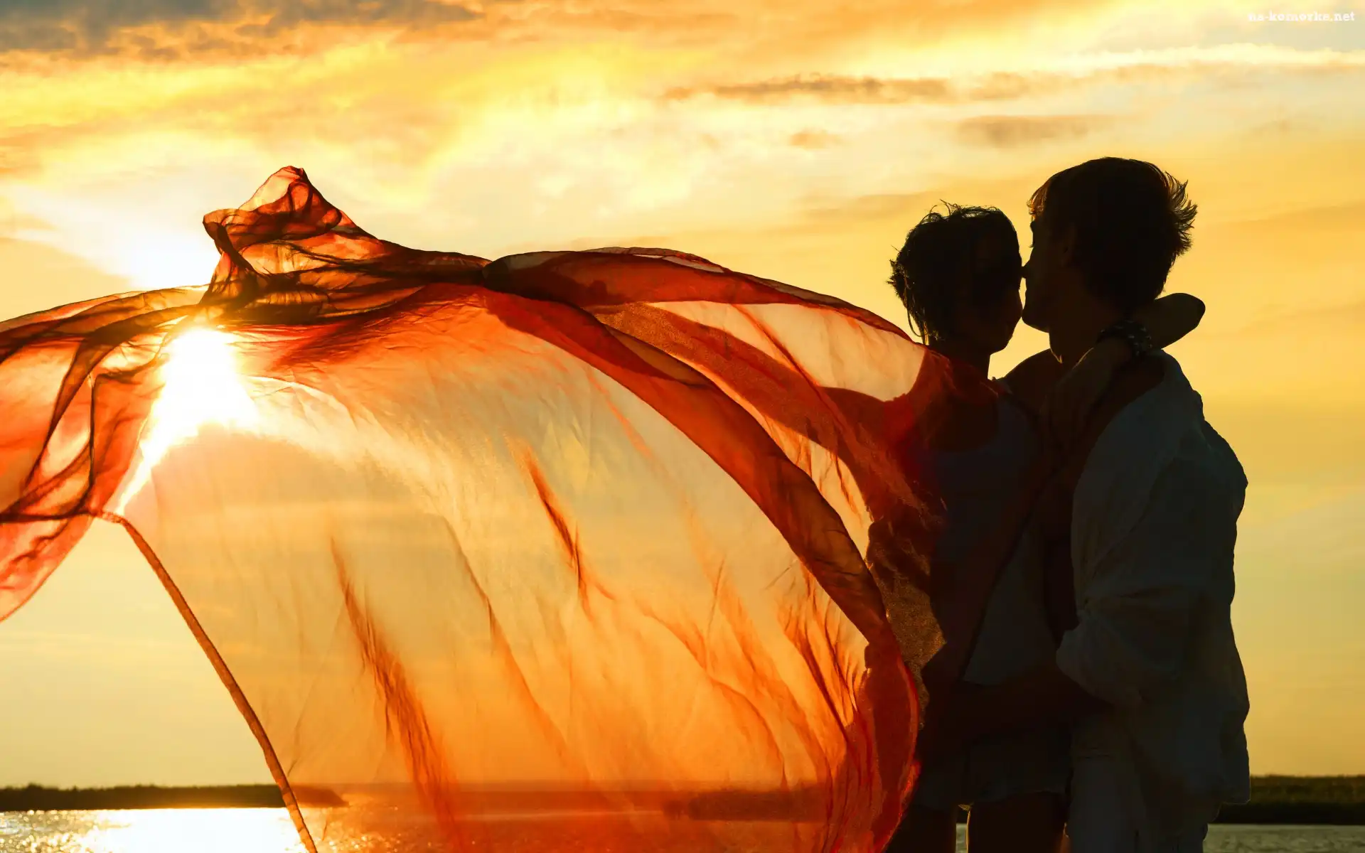 Zachód słońca, Miłość, Kobieta, Mężczyzna, Chusta na Komórkę