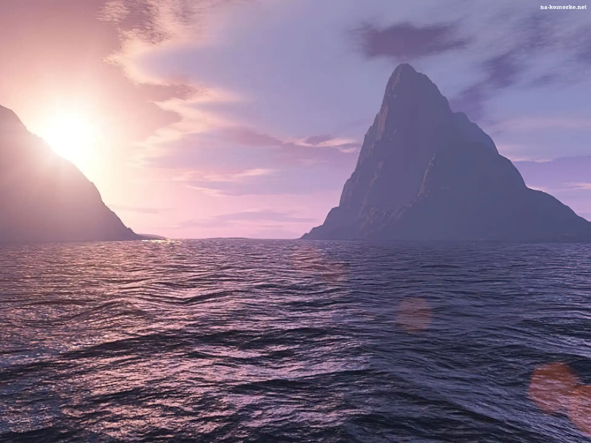 Zachód Słońca, Góry, Chmura, Morze, Niebo na Komórkę