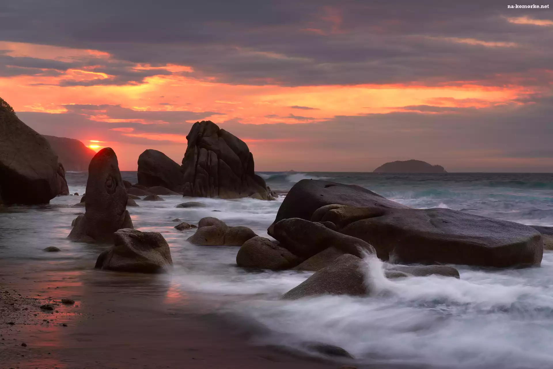 Zachód słońca, Skały, Kamienie, Morze, Chmury na Komórkę