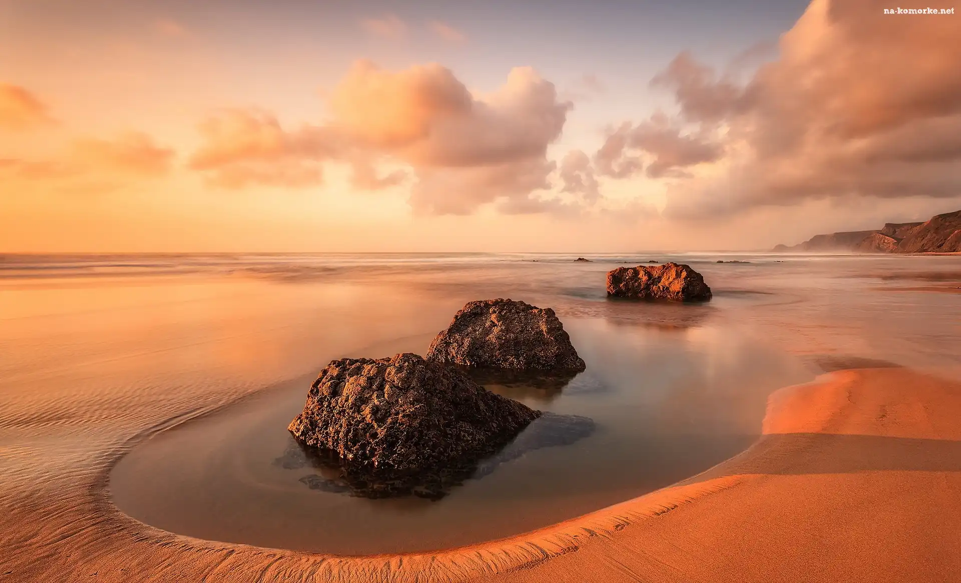Zachód słońca, Morze, Skałki na Komórkę