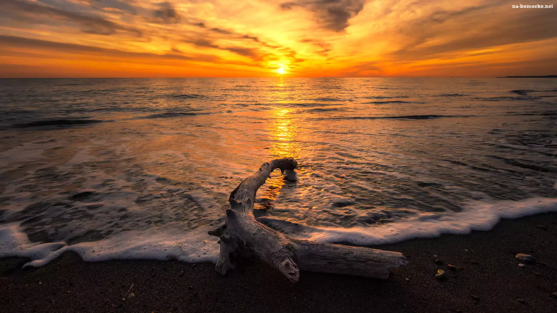 Fale, Uschnięty, Morze, Zachód słońca, Plaża, Konar na Komórkę