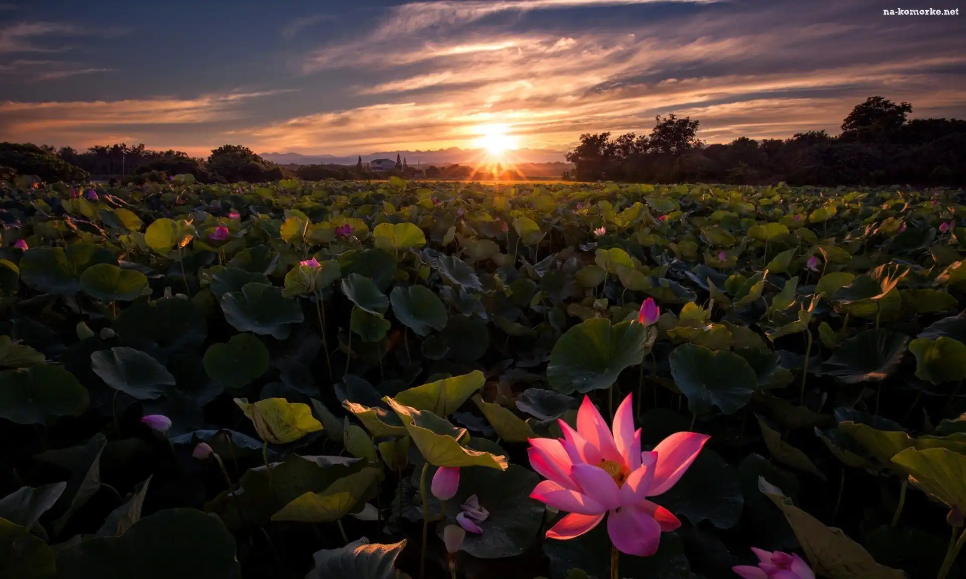 Zachód słońca, Plantacja kwiatów na Komórkę