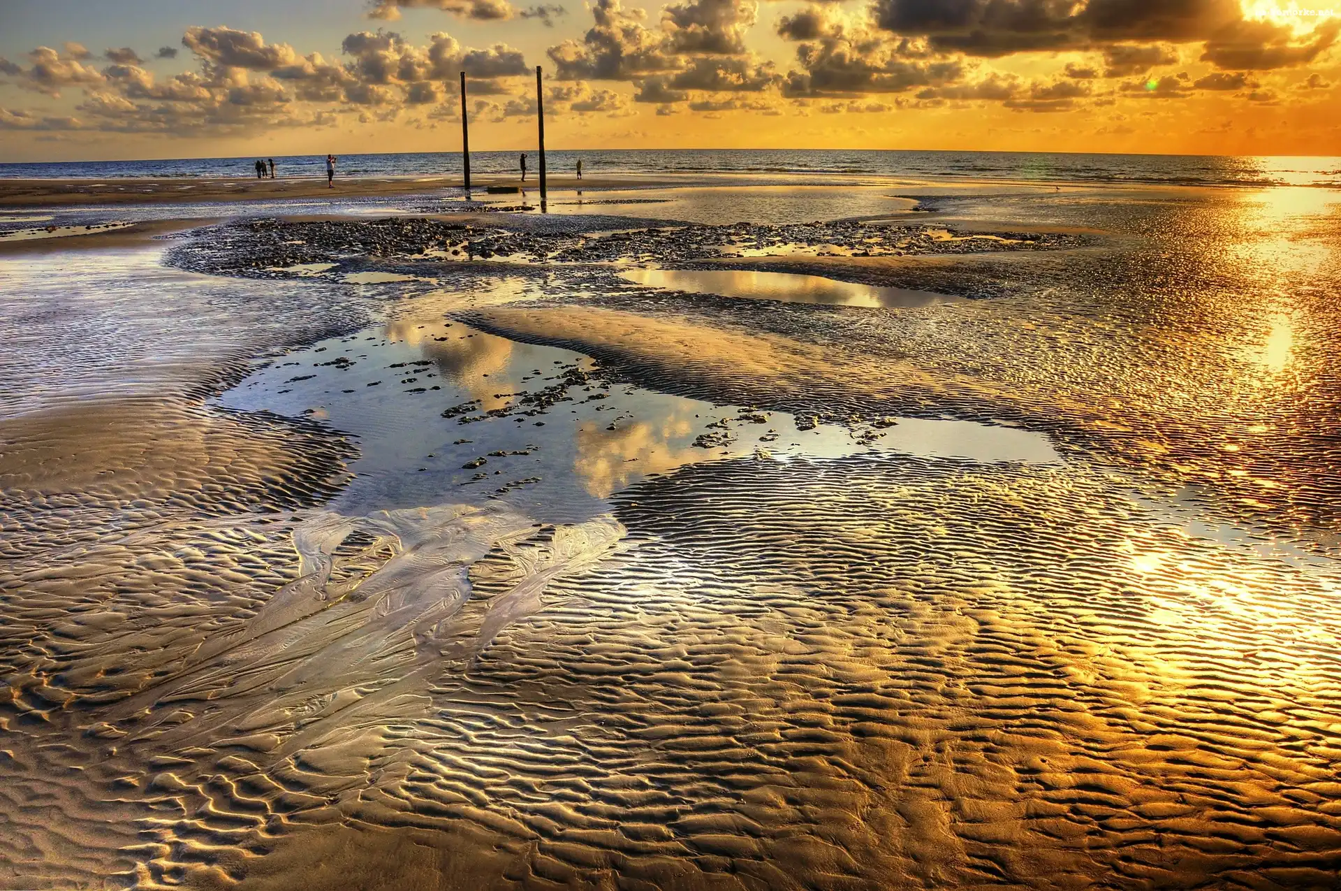 Zachód, Zalana, Morze, Chmury, Plaża, Słońca na Komórkę