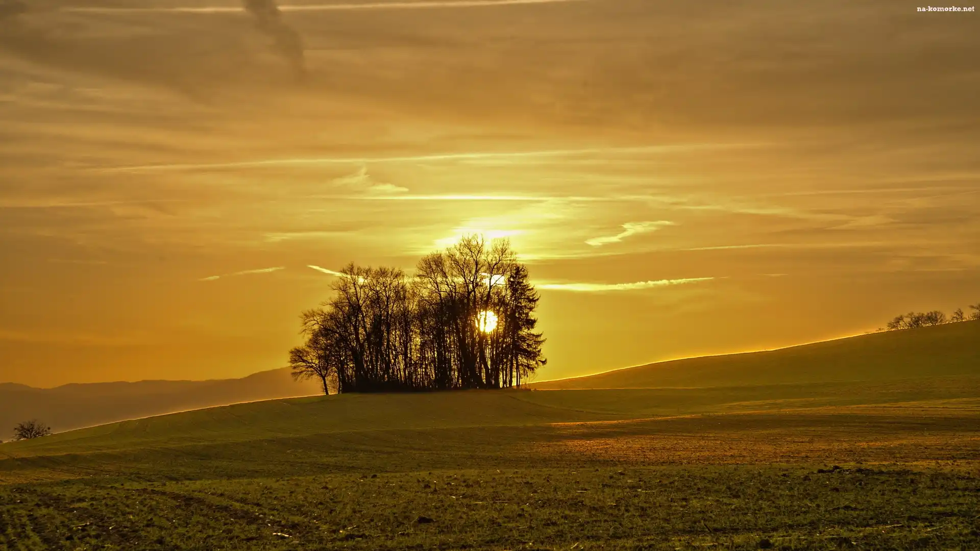 Zachód, Łąki, Słońca, Drzewa na Komórkę