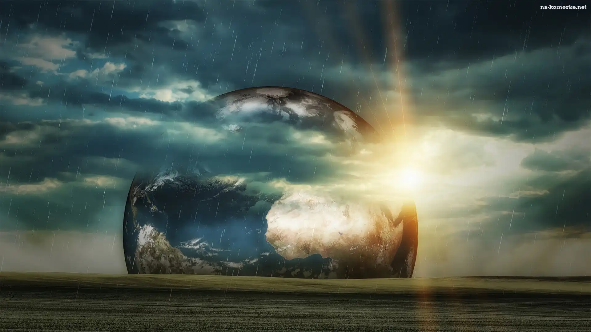 Zachód, Deszcz, Słońca, Planeta na Komórkę